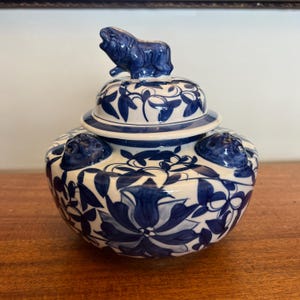 The larger of the two dishes with the blue rim measures approximately 2.2cm tall and 11.2cm diameter.