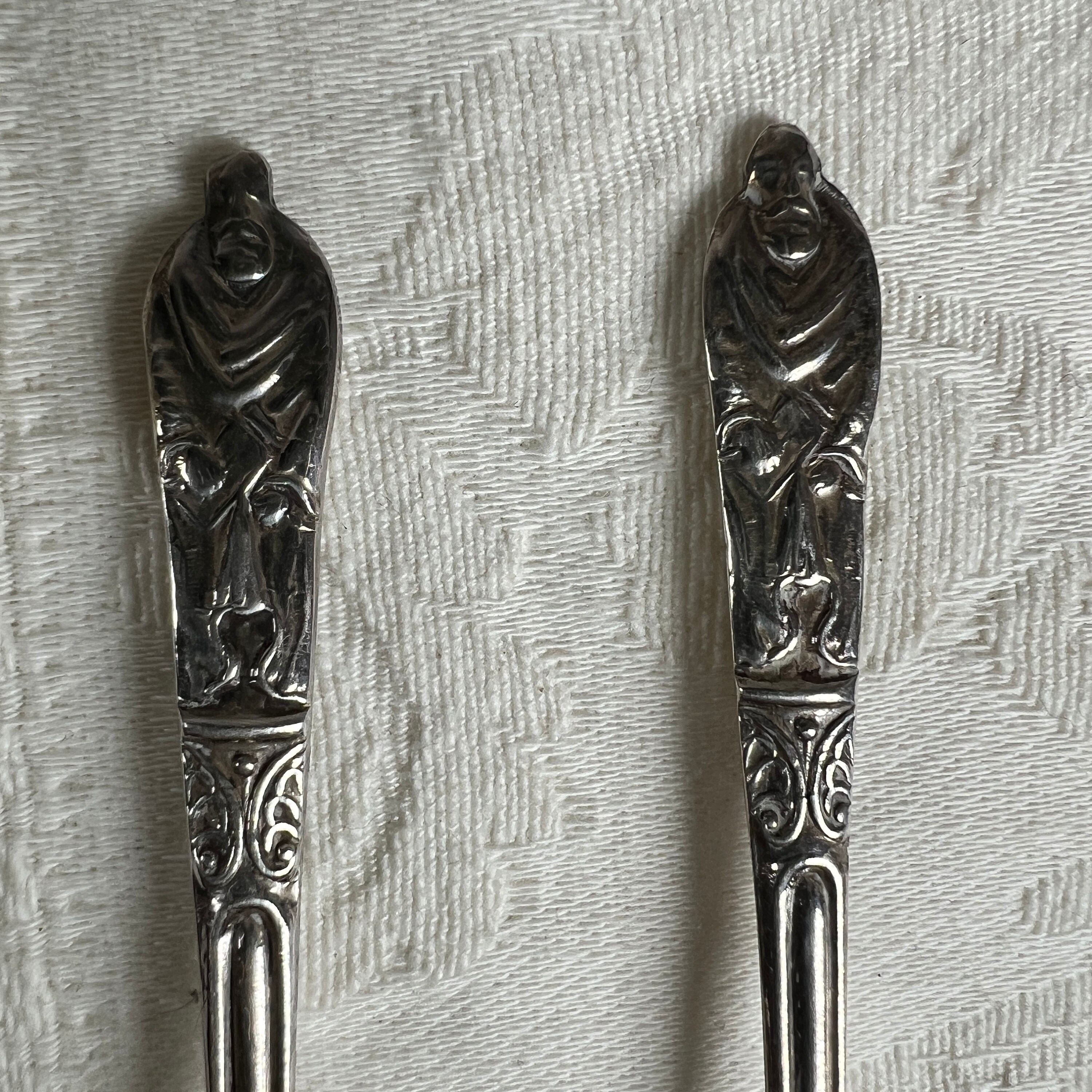 The figures in this set of 6 are all the same, well crafted and also represented on the reverse of the spoon. The spoons have a nice weight to them and would be perfect for use with a small coffee cup, or could be used with a boiled egg or even in small condiment bowls with sauces.