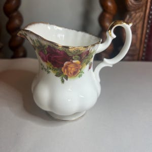 The sugar bowl is in very good vintage condition with no damage, although there are some small areas of wear on the gold filigree design where the transfer has worn slightly around the edges.