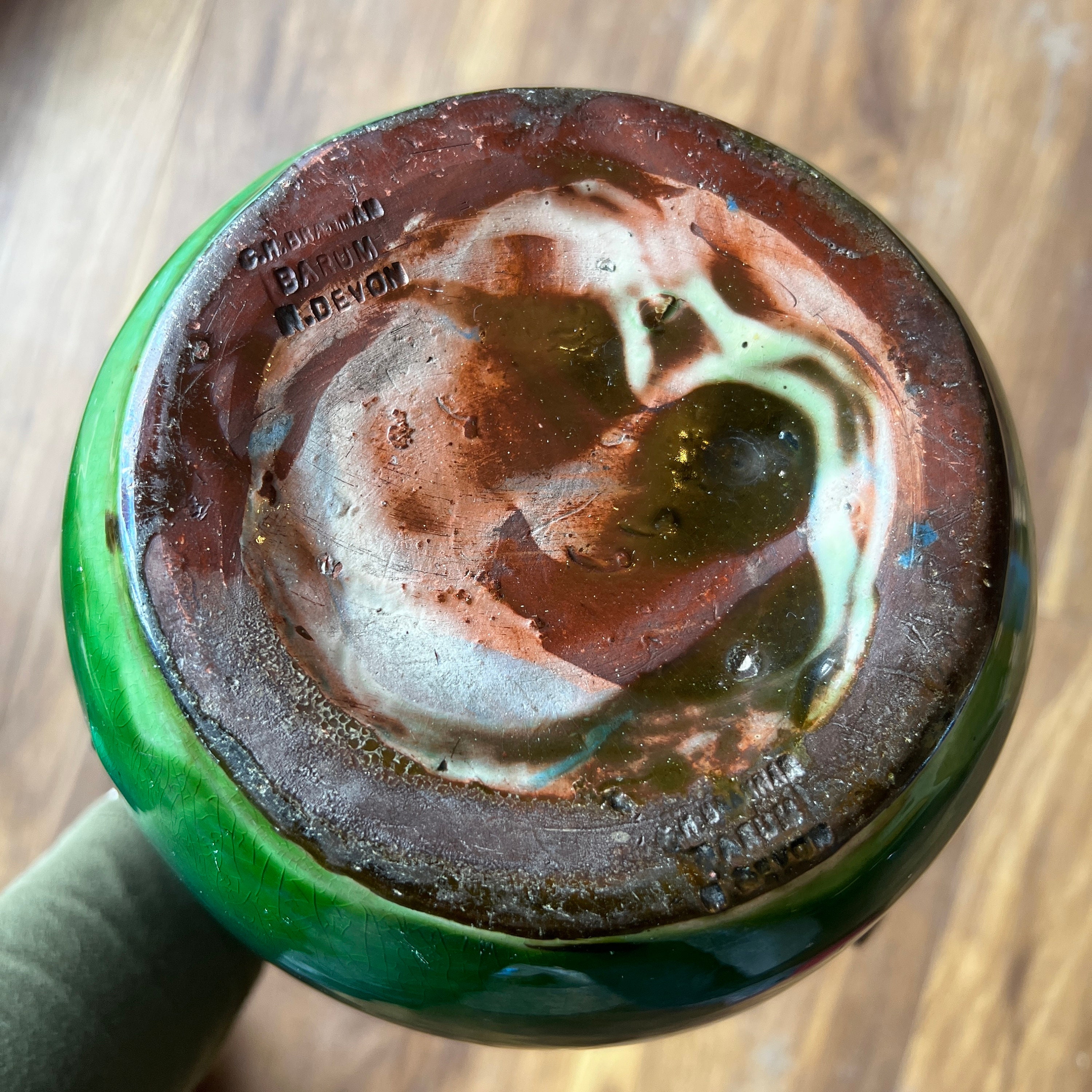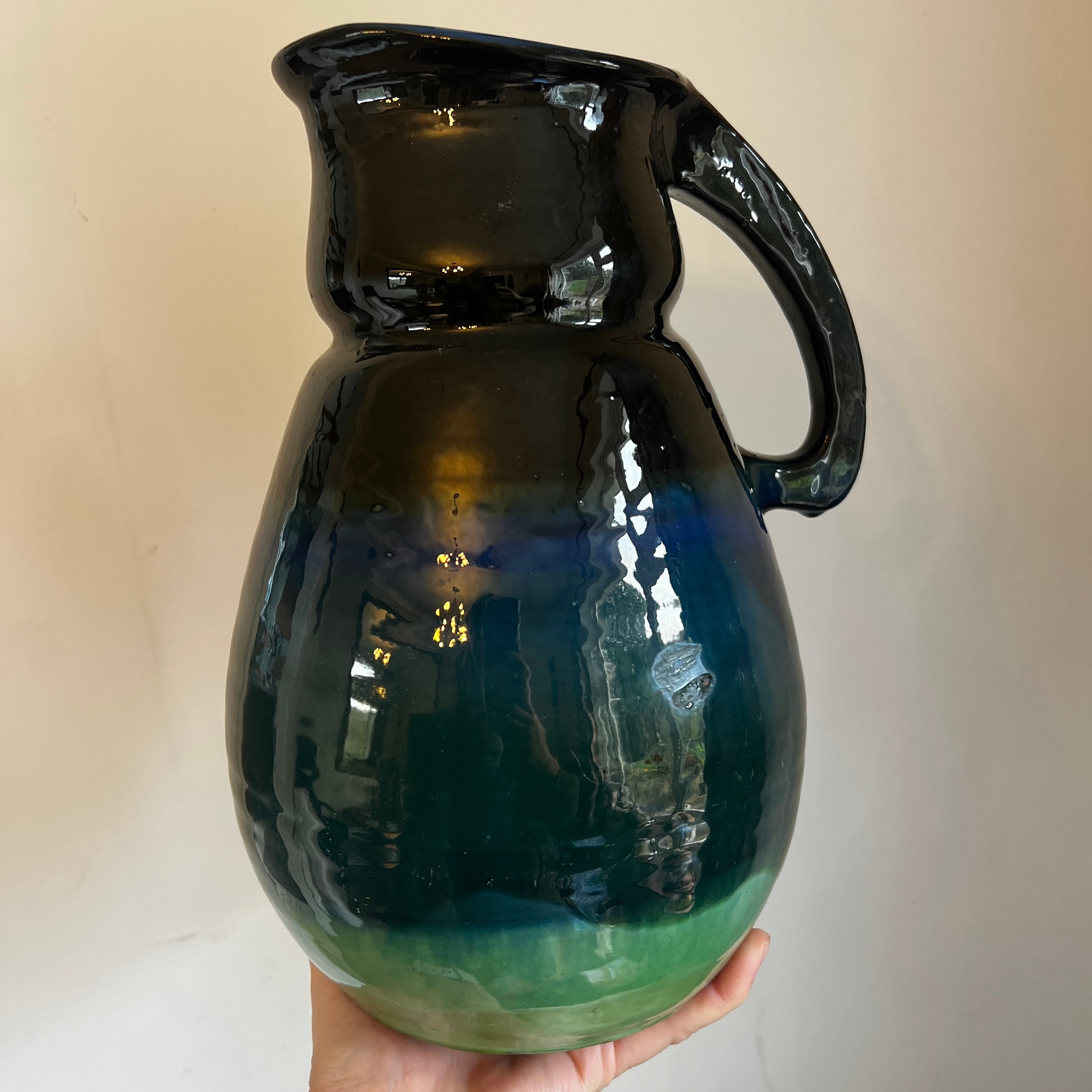 Beautiful, unique and huge vintage glazed jug by C.H. Brannam of Barnstaple, Devon. This gorgeous jug is emboss stamped with the maker's mark and Barum on the base. It holds a whopping 4.5 litres and weighs just over 2Kg when empty. It is a lovely and very substantial piece that would look great as a statement decorative piece but would hold a lot of Pimm's for a summer party or could also be used for iced water, or as a vase for flowers.