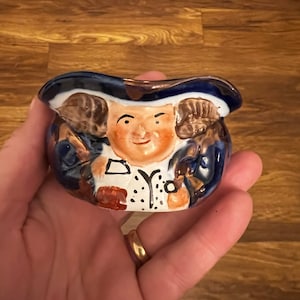 A charming and unusual little Toby style jug, perfect as a decorative item, but also useful for serving small quantities of cream, milk etc.. The jug holds approximately 110ml.