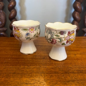 A pretty little hand painted vintage porcelain egg made in Thailand. This pretty little egg is about the size of a large hen's egg and has been decorated with sprigs of flowers in a pastel lilac colour and green. The porcelain egg is glazed over the pattern with a high gloss finish and retains the original sticker from the manufacturer. It comes with a bronze effect plastic stand. It is in excellent condition and is believed to date to the 1990-2000. The egg measures approximately 6.5cm tall without the stand and 8cm with the stand.
