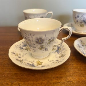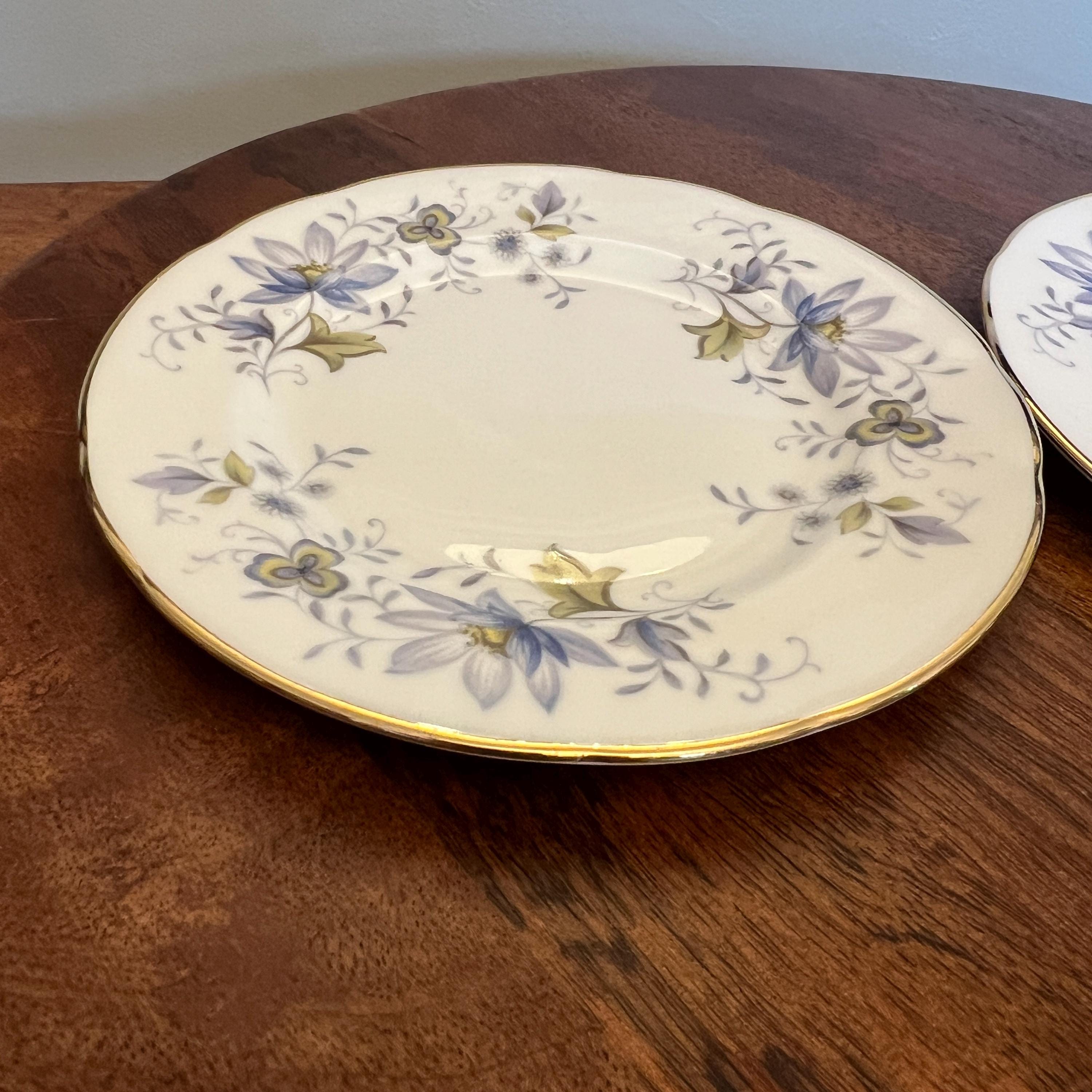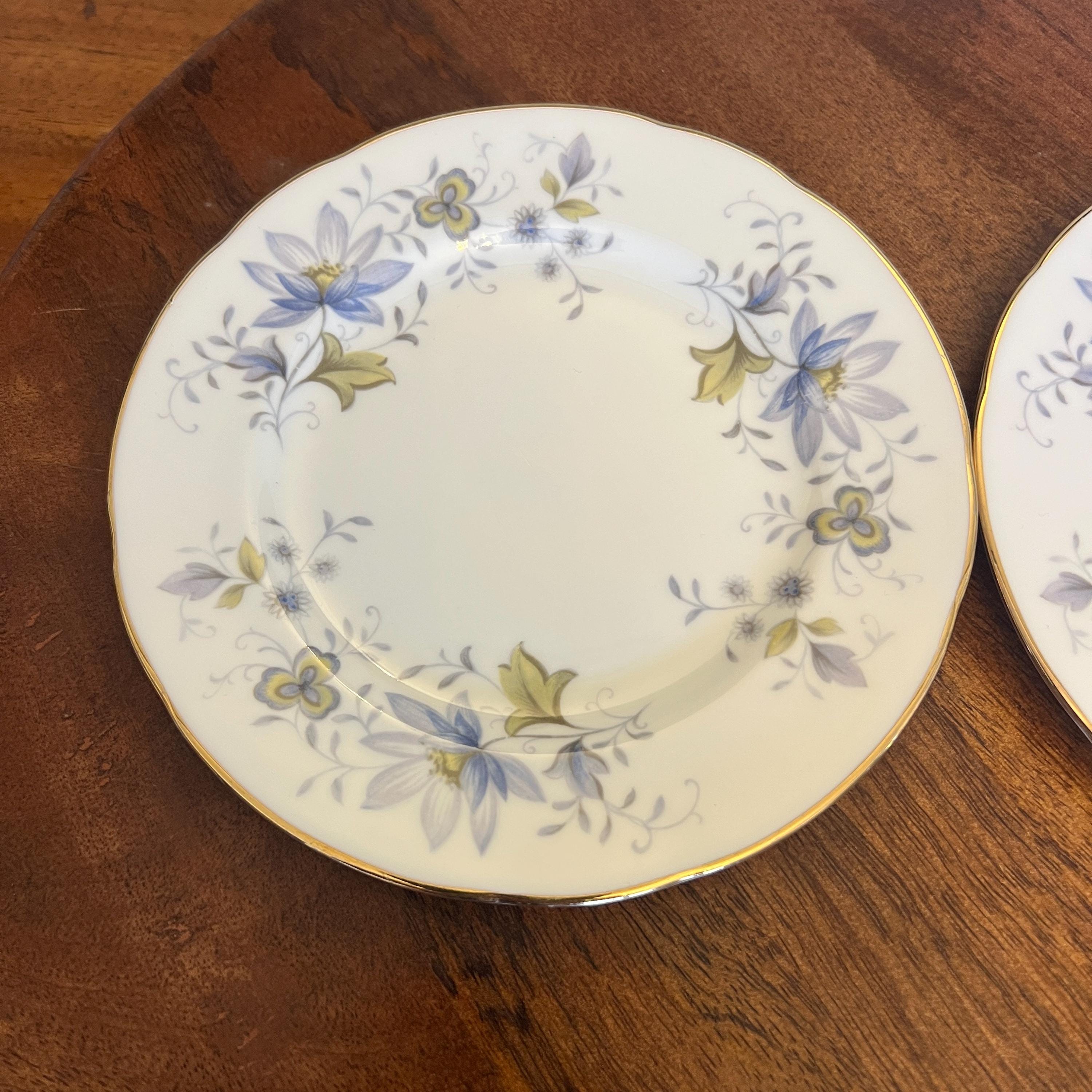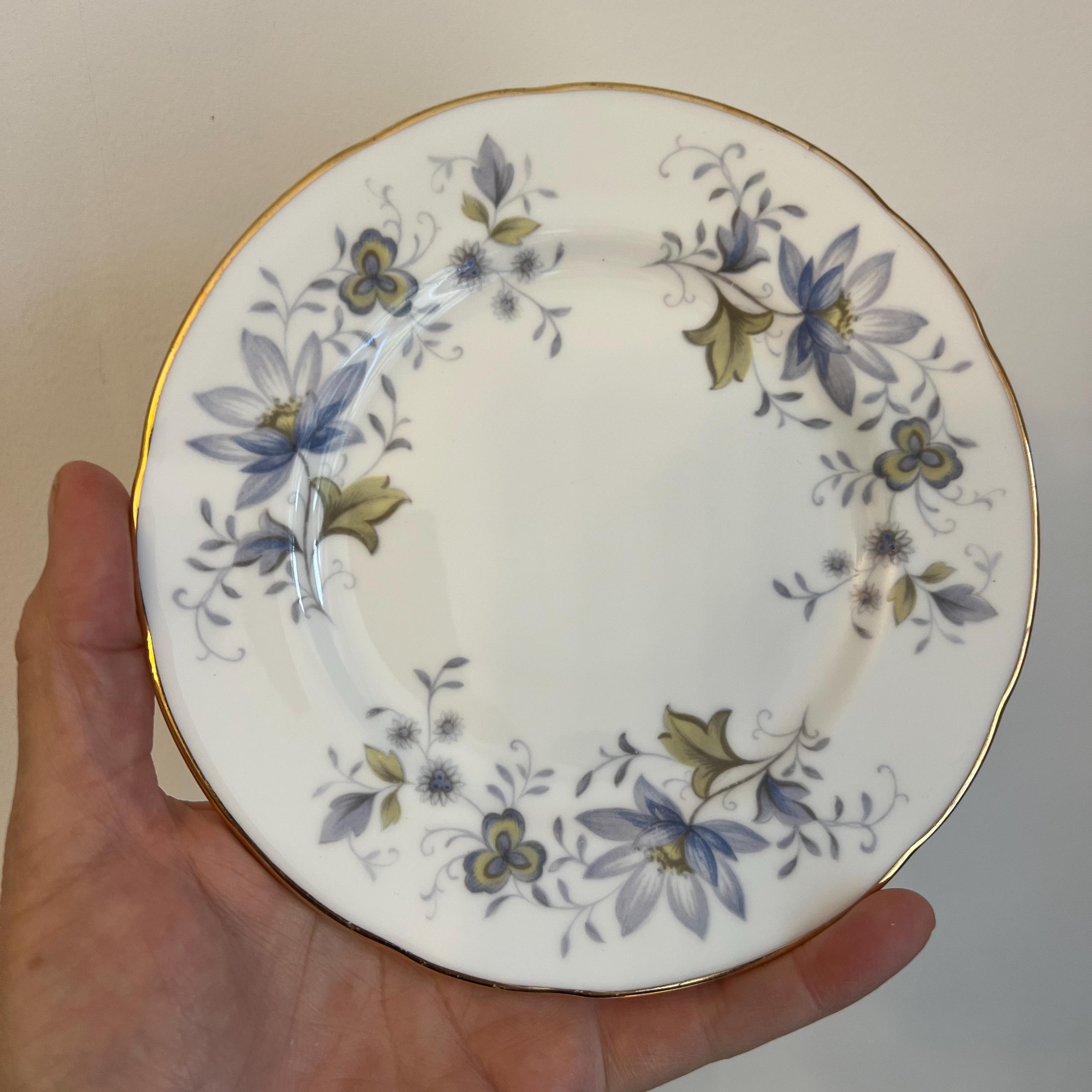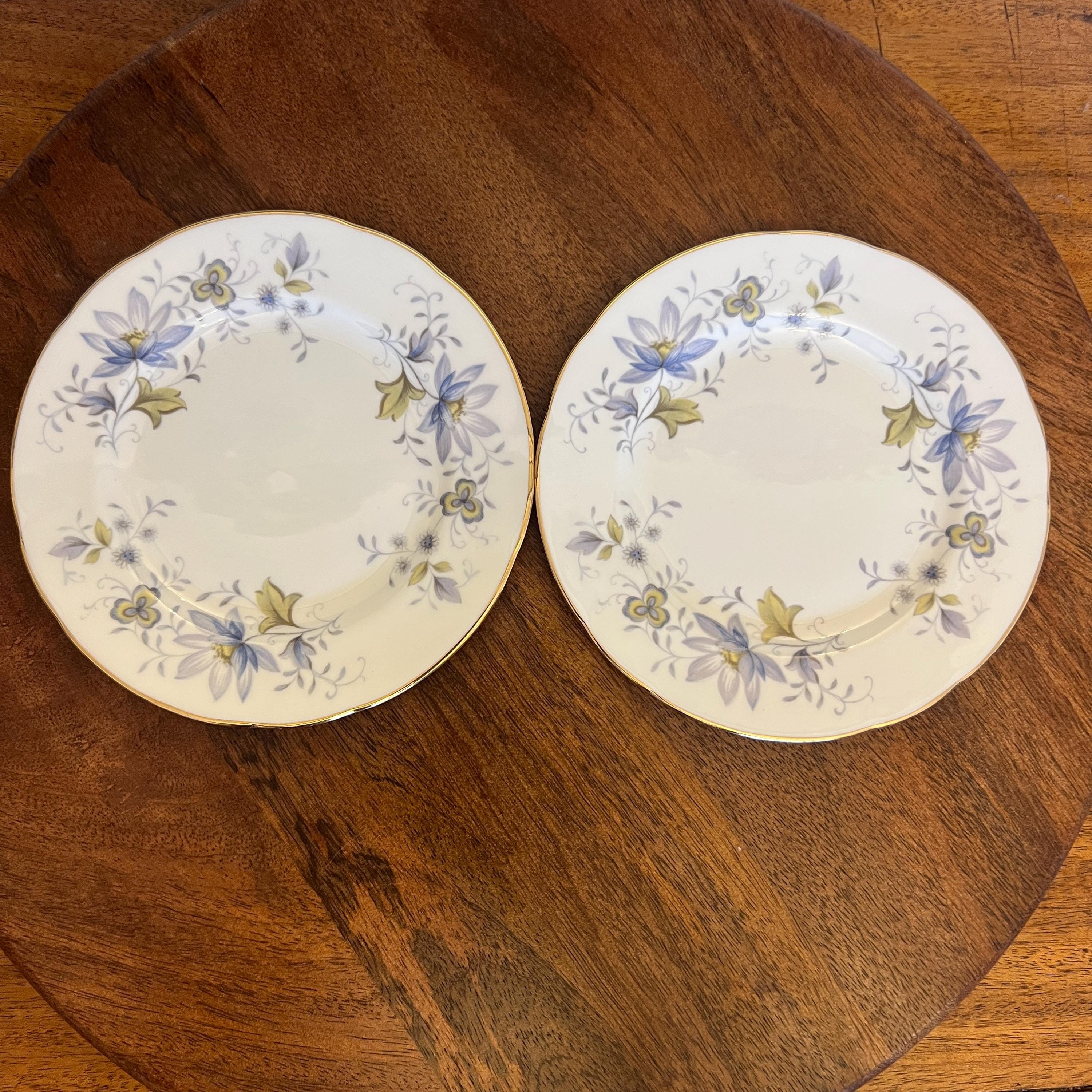 Two lovely, vintage, English fine bone china small tea plates by Colclough in their Rhapsody in Blue design. Production of this design ran from around the 1960's until it was discontinued in the late 1990's. Other items in the range can be found on separate listings, where still available.