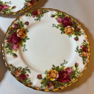 The plates are decorated with a pretty muted blue floral design with golden gilding and have a lovely shape. They are marked with the maker's mark on the base. The plates are in very good condition with no damage or cracks. These items are vintage and have been used, the gilding is generally very good, however there are some very minor superficial scratches on the face from use.