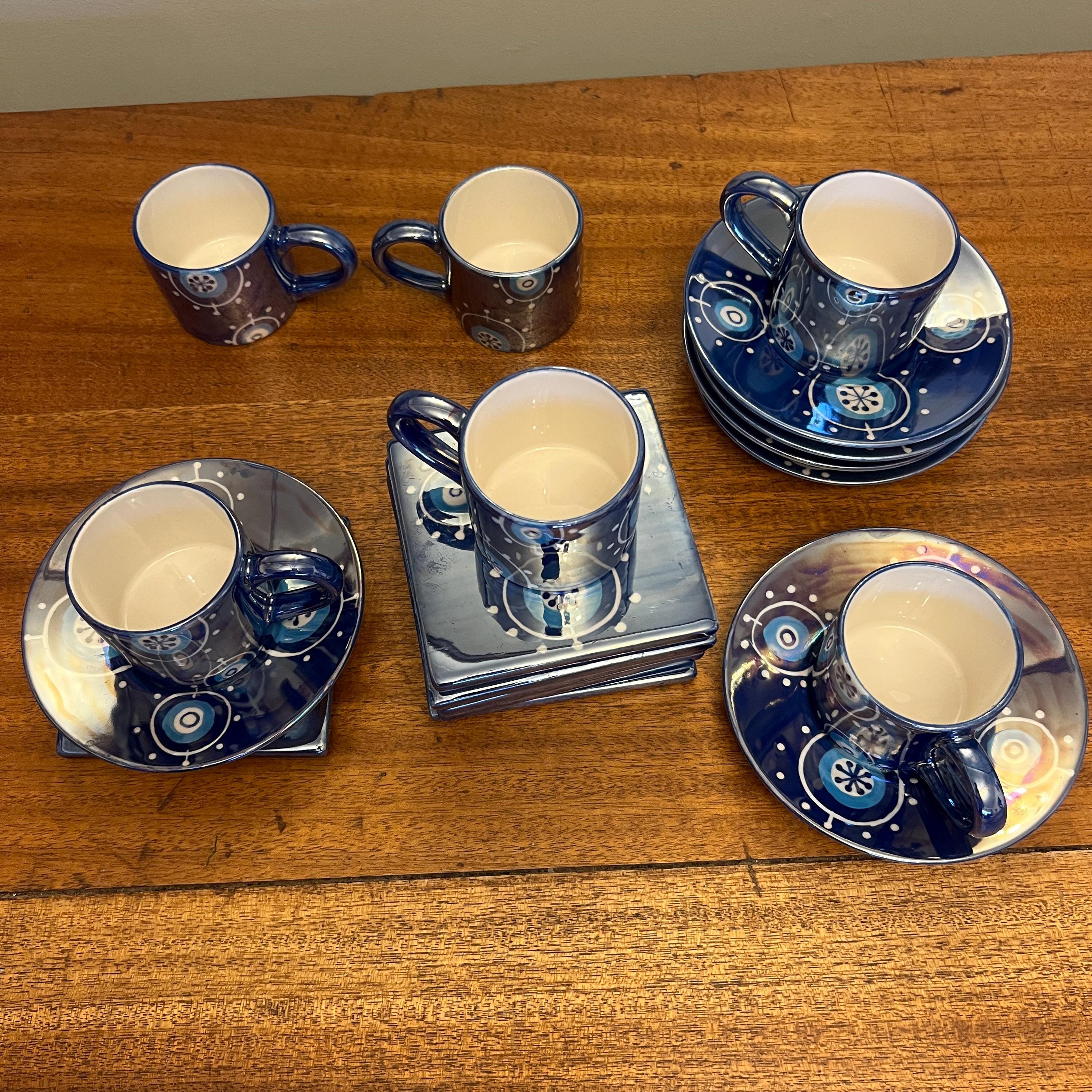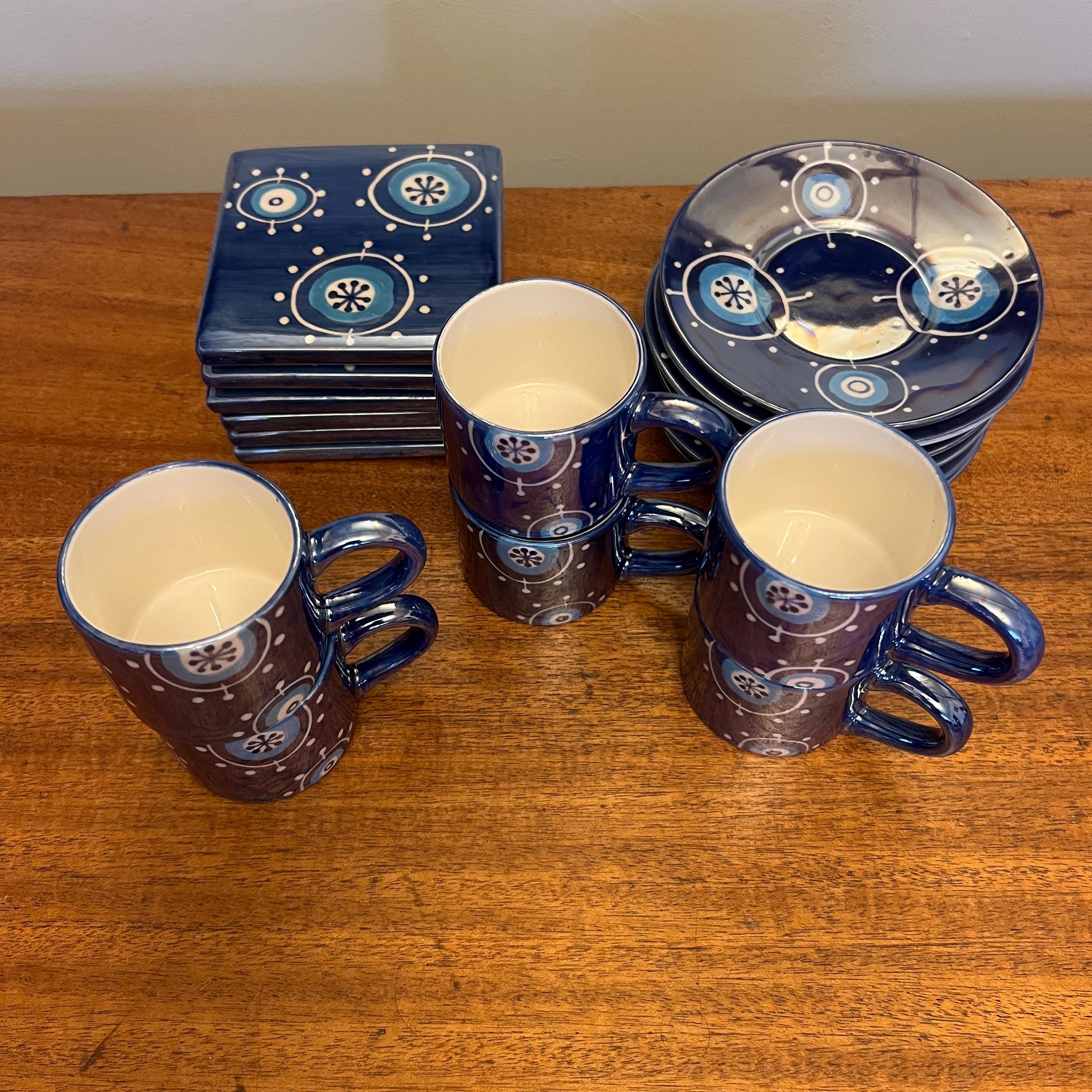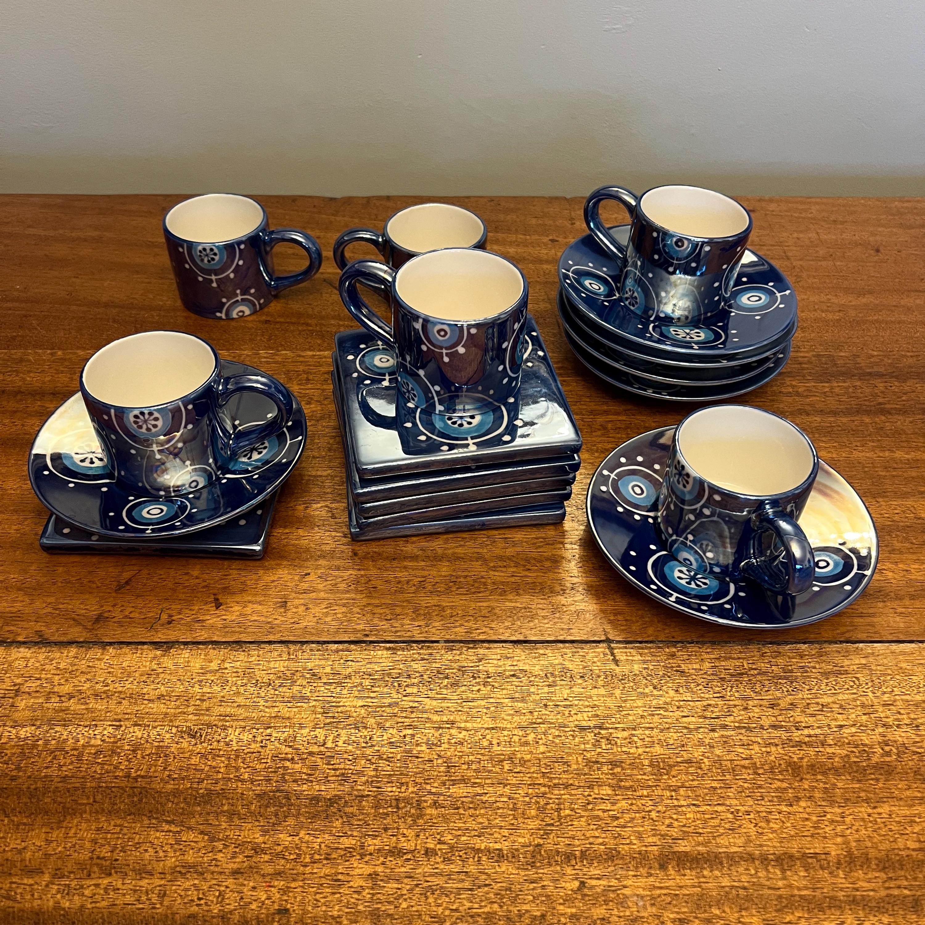 This listing is for the set of 6 cups, saucers and coasters only. All other items in the photographs are for display or size comparison purposes only and are not included.