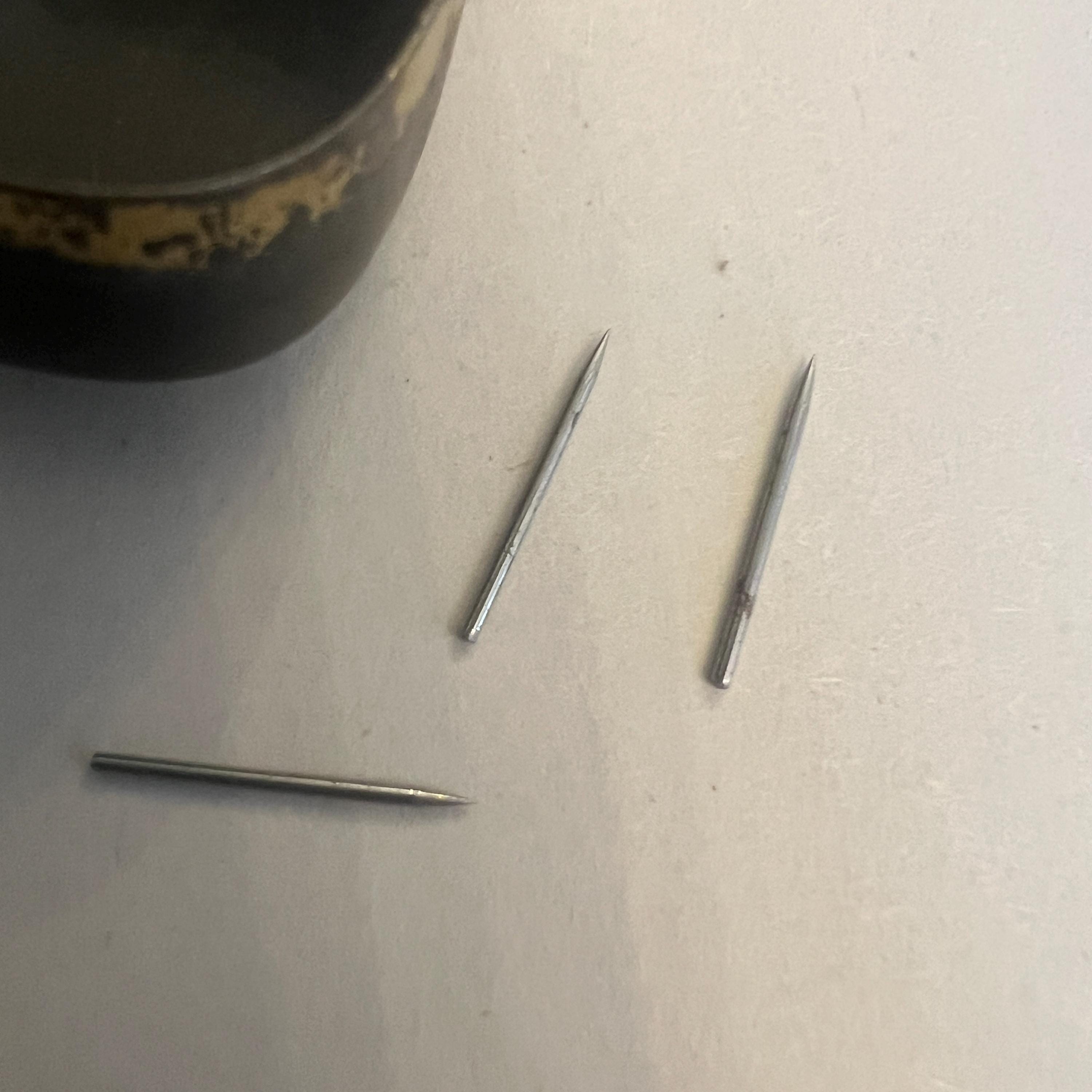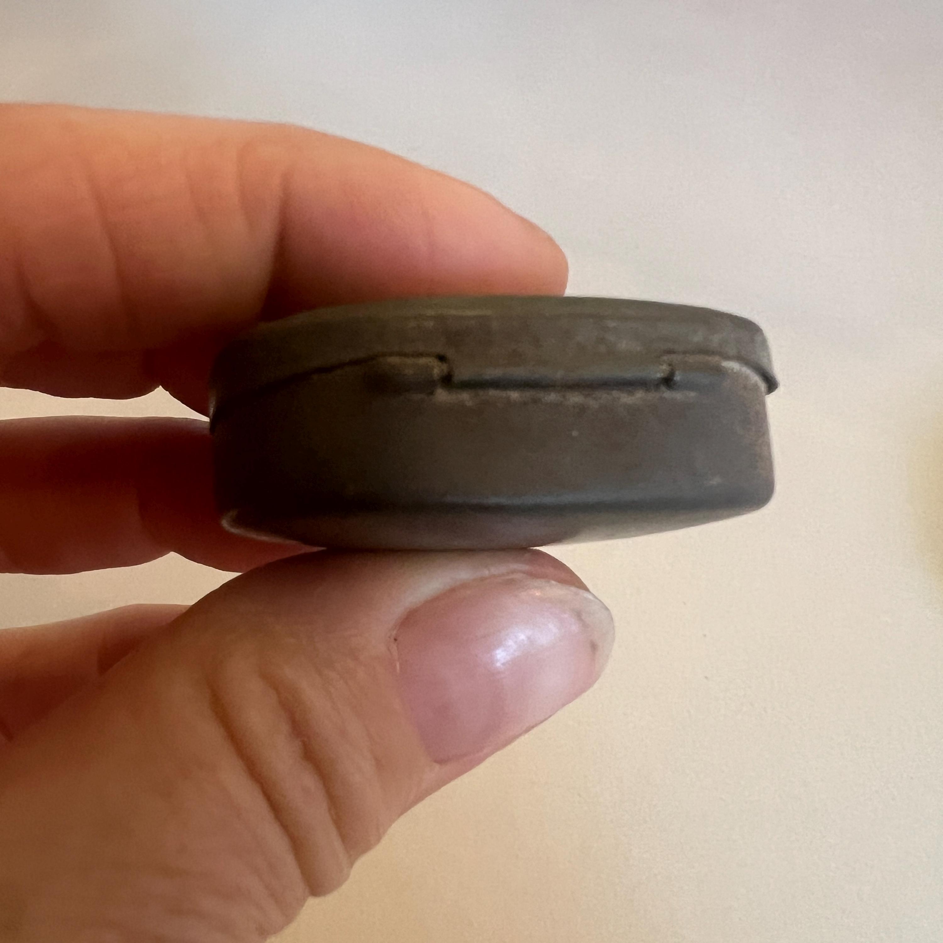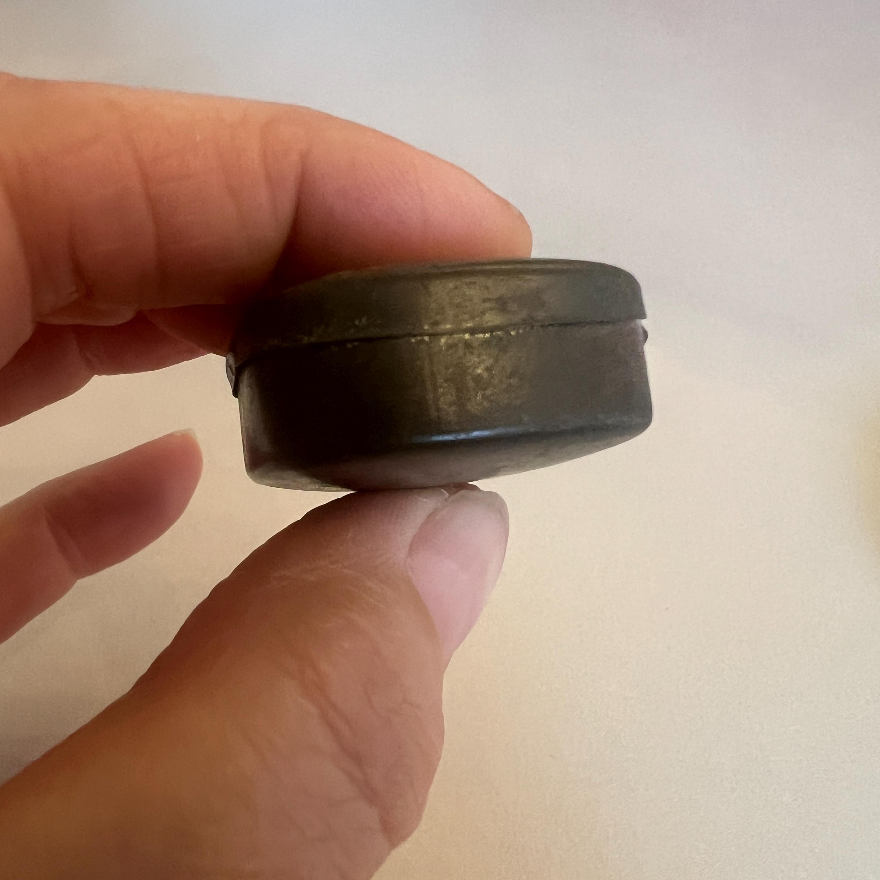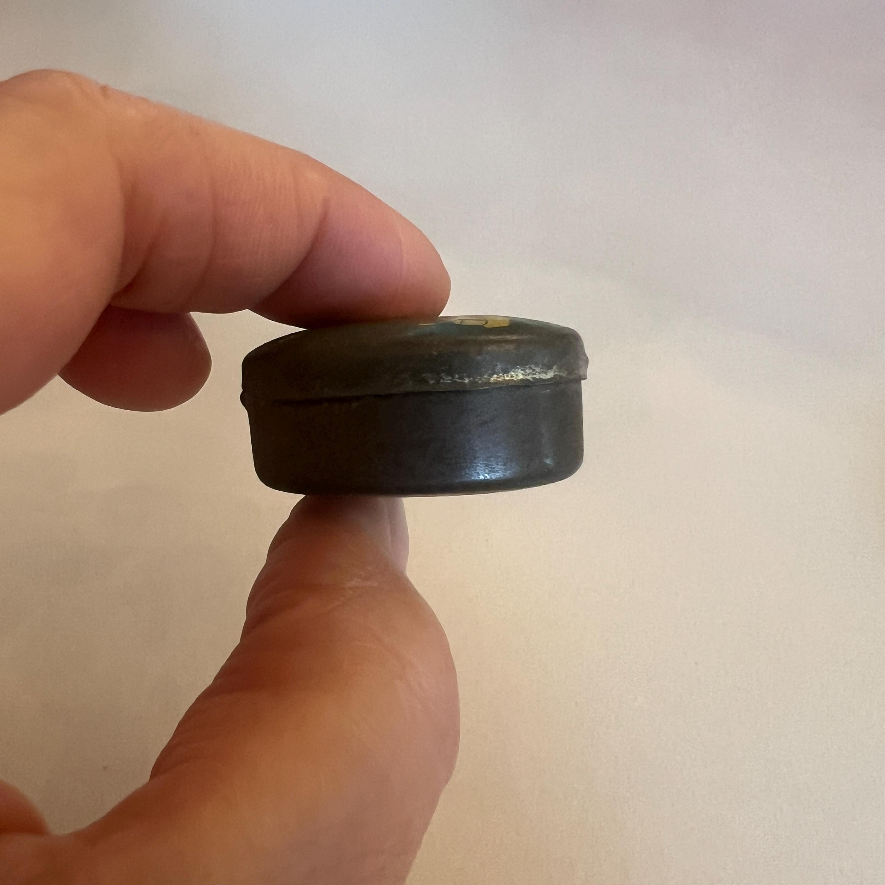 A lovely little gramophone needle tin containing 3 needles, believed to date from the 1930's or thereabouts. A pretty and collectable tin featuring the dog 'Nipper' listening to the recording of his master's voice on the gramophone. Overall it is in good but well used condition with age related patina and deterioration. The lettering on the front is still good, however there is wear on the back and some of the lettering has been worn away. Most of the gold gilding has gone. It has not been cleaned, I have left all restoration for the new owner. There are 3 needles inside. I do not know if these are the original needles for the tin. The tin measures approximately 4cm long, 3cm wide and 1.5cm high.