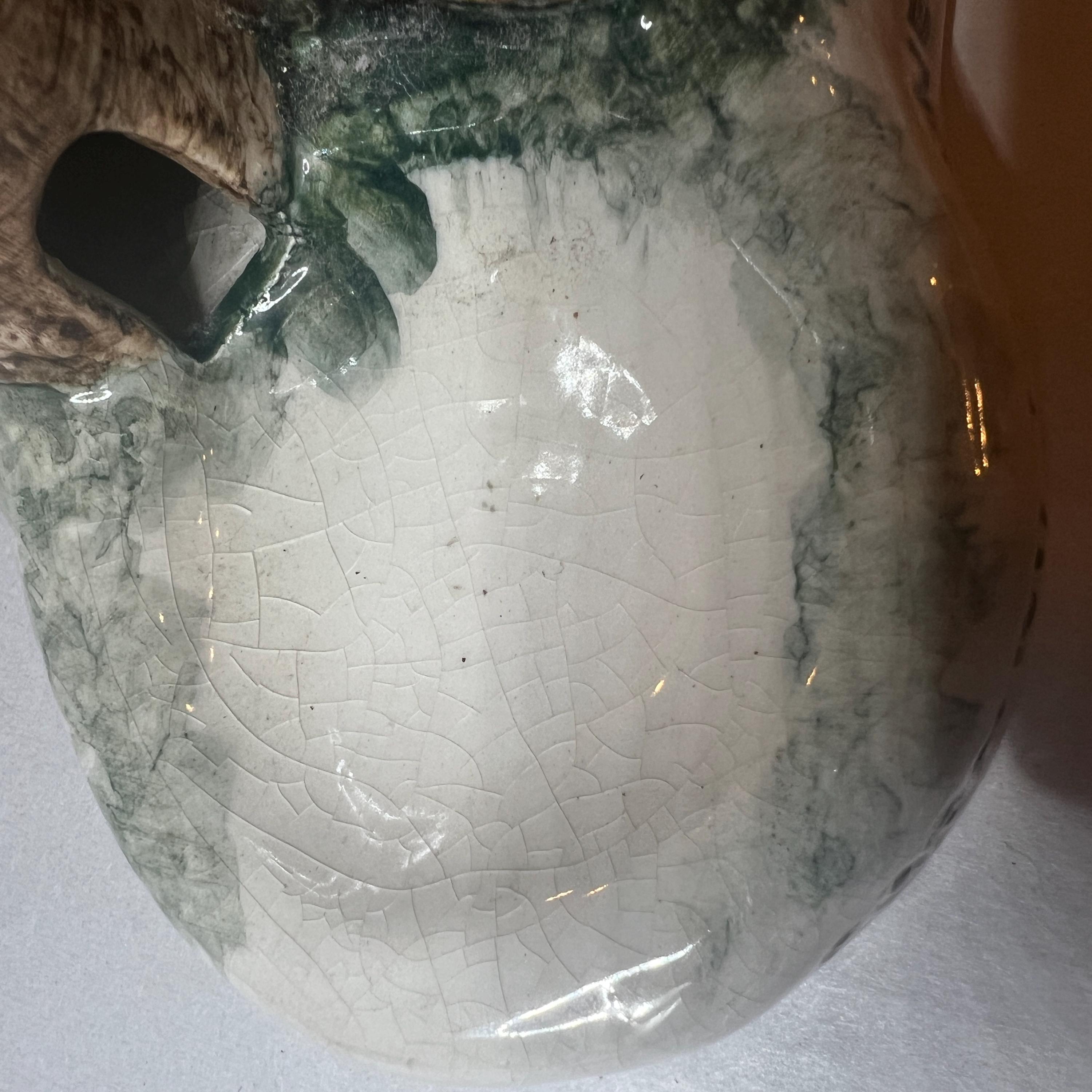 On the back of the base there is a manufacturing blip where a chunk of clay has come off the corner. This has then been glazed over and fired and can be seen in the photographs of the back. It is not a damage chip.