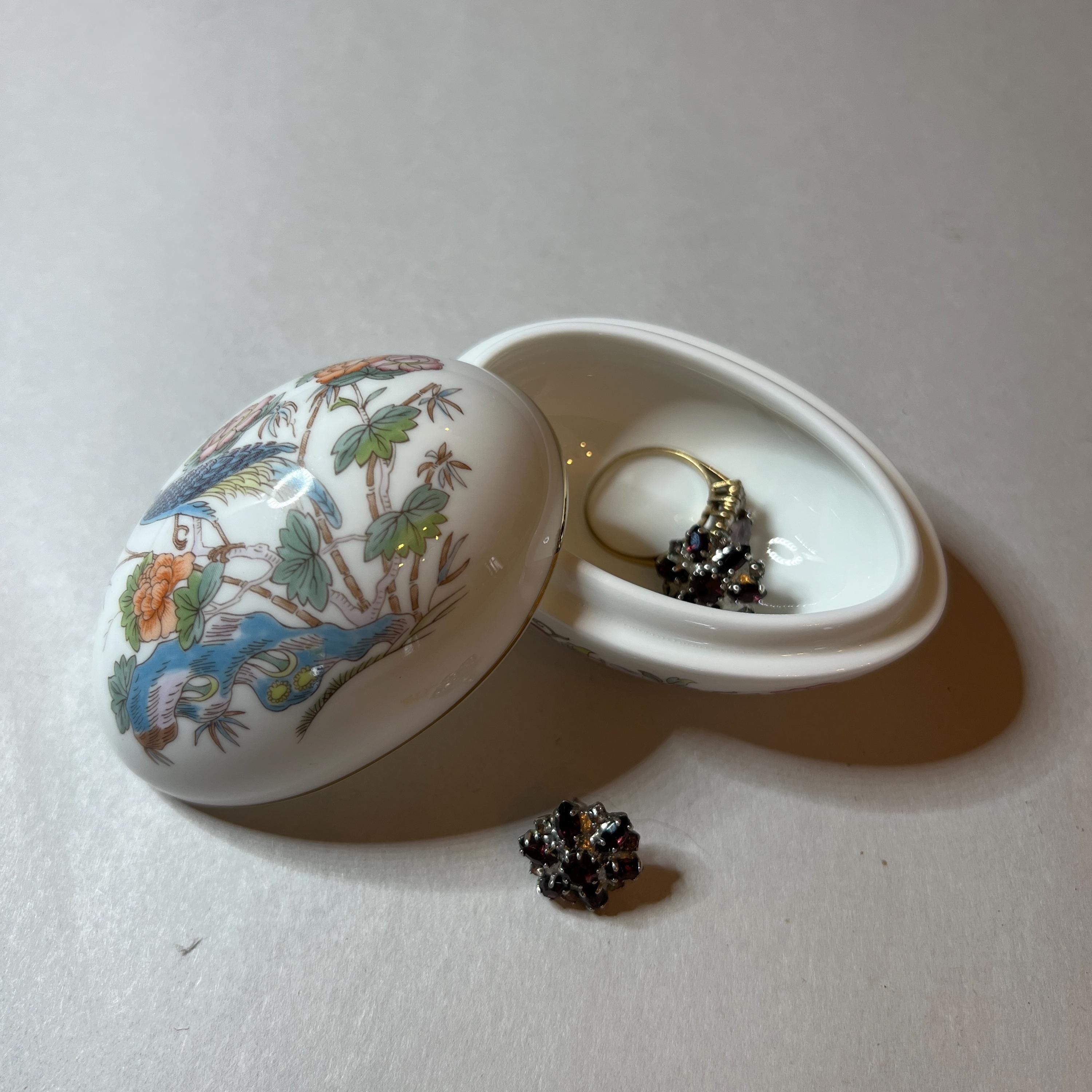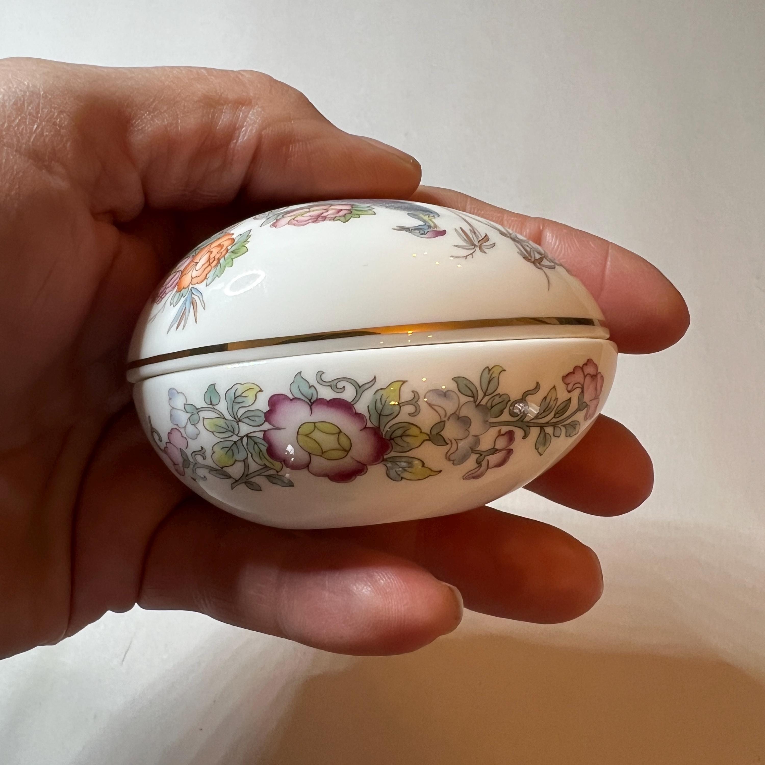 This listing is for the Kutani Crane Wedgwood egg trinket box only. All other items in the photographs are for display or size comparison purposes only and are not included.