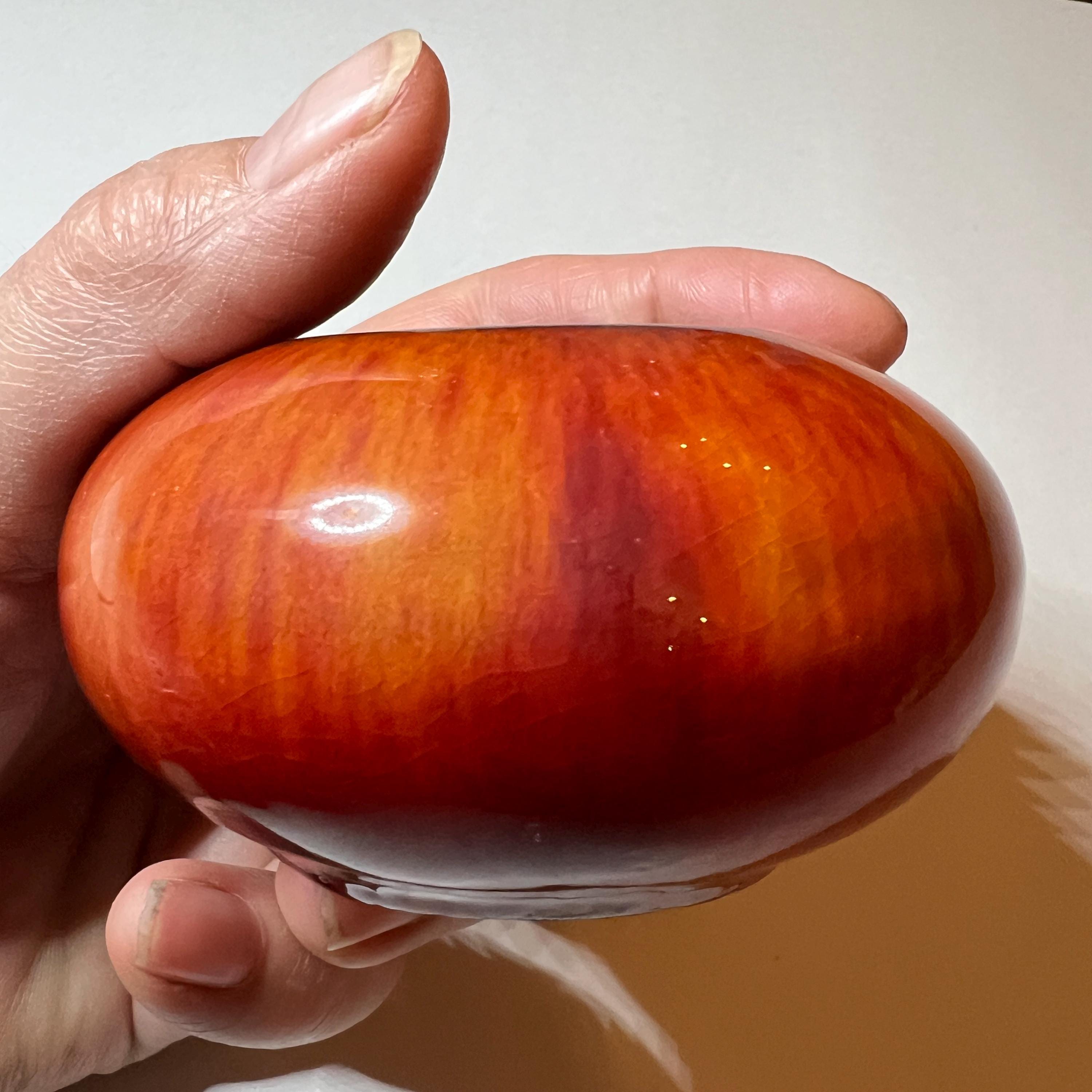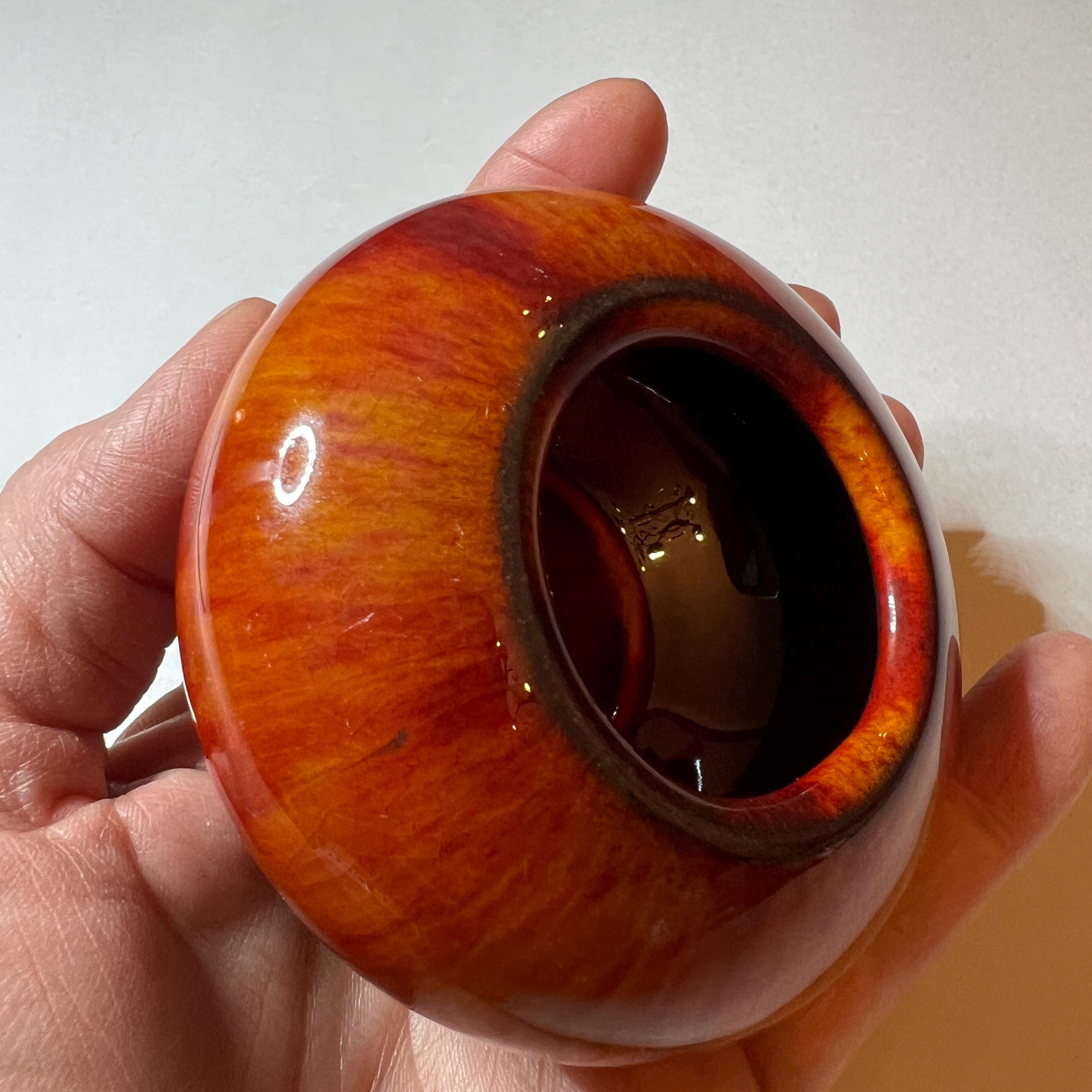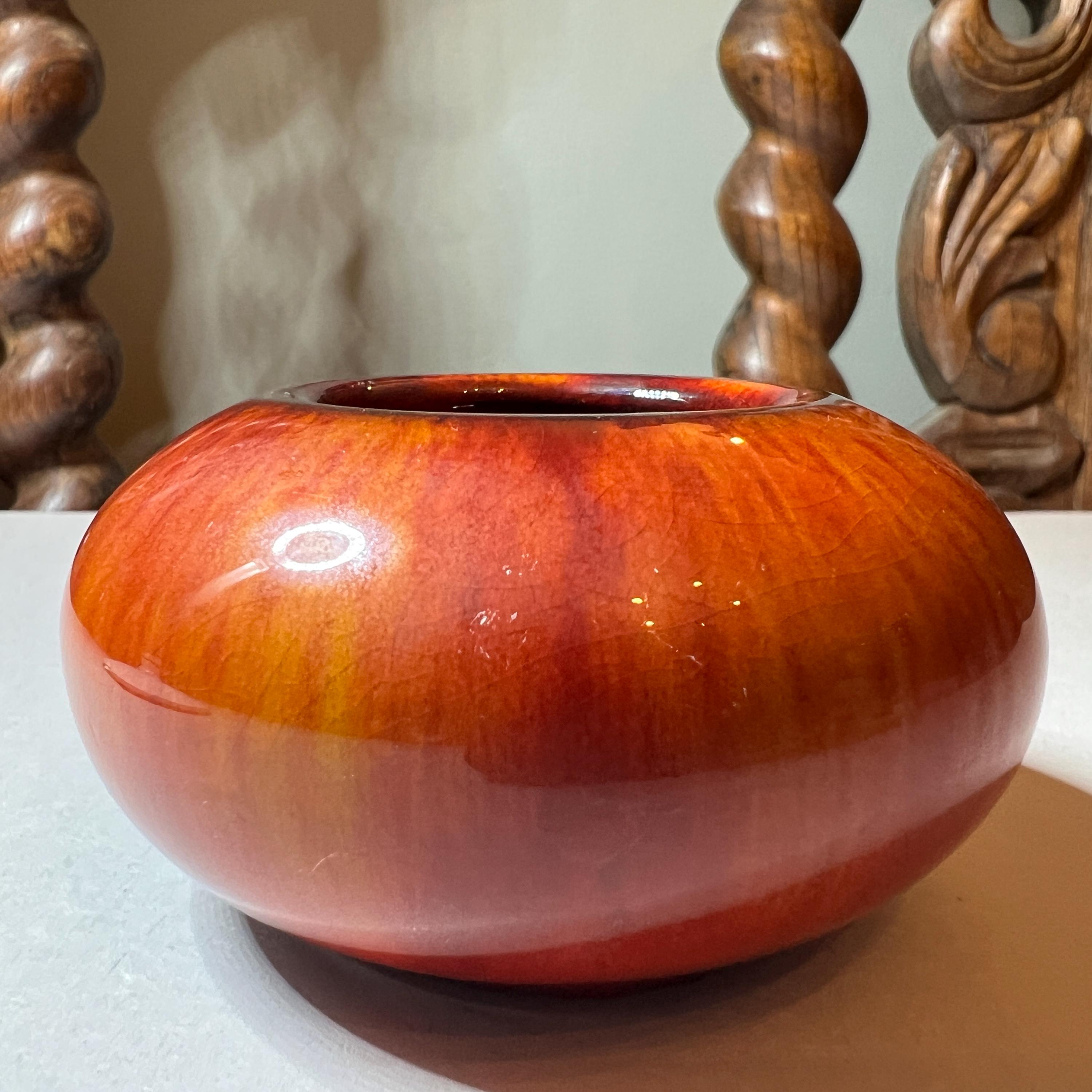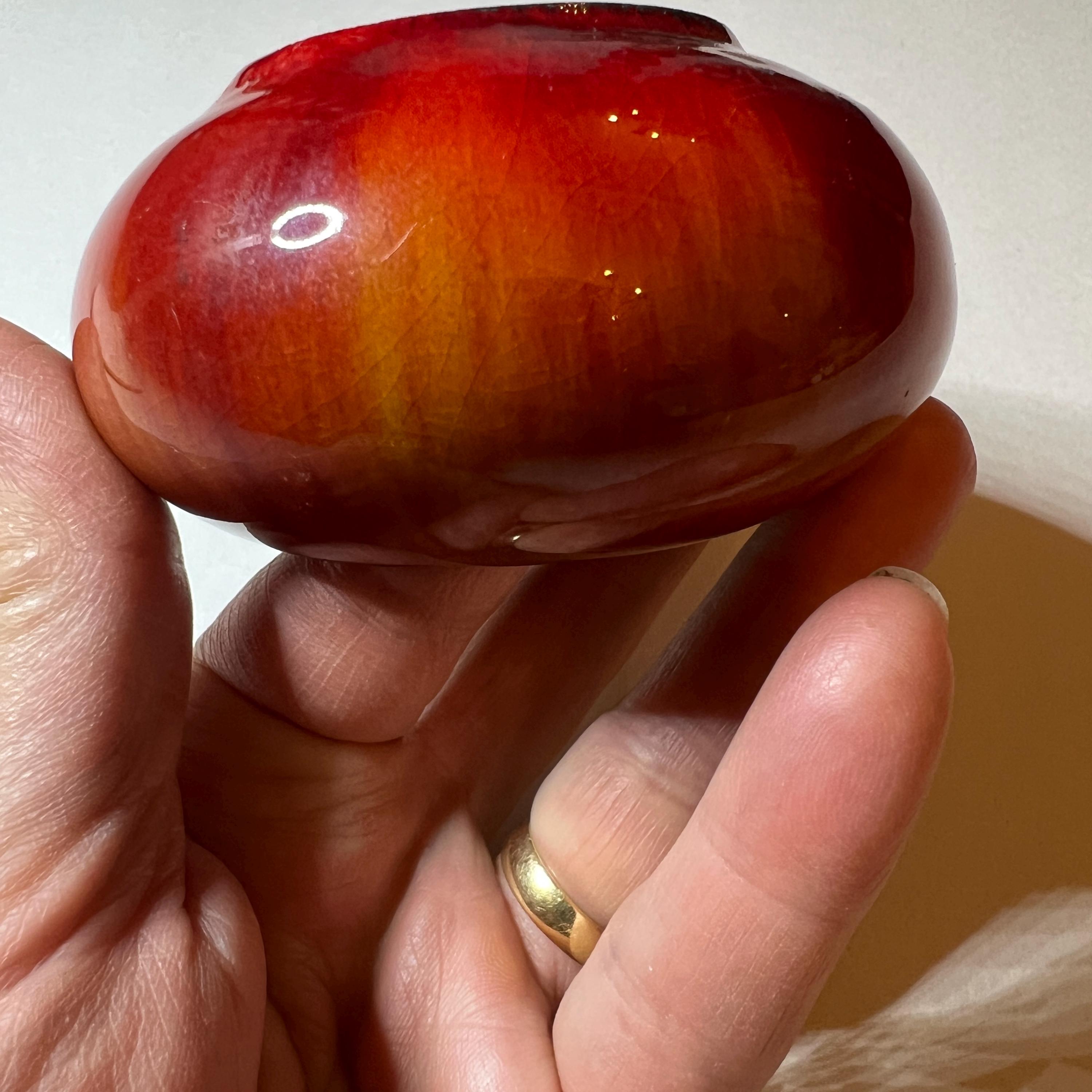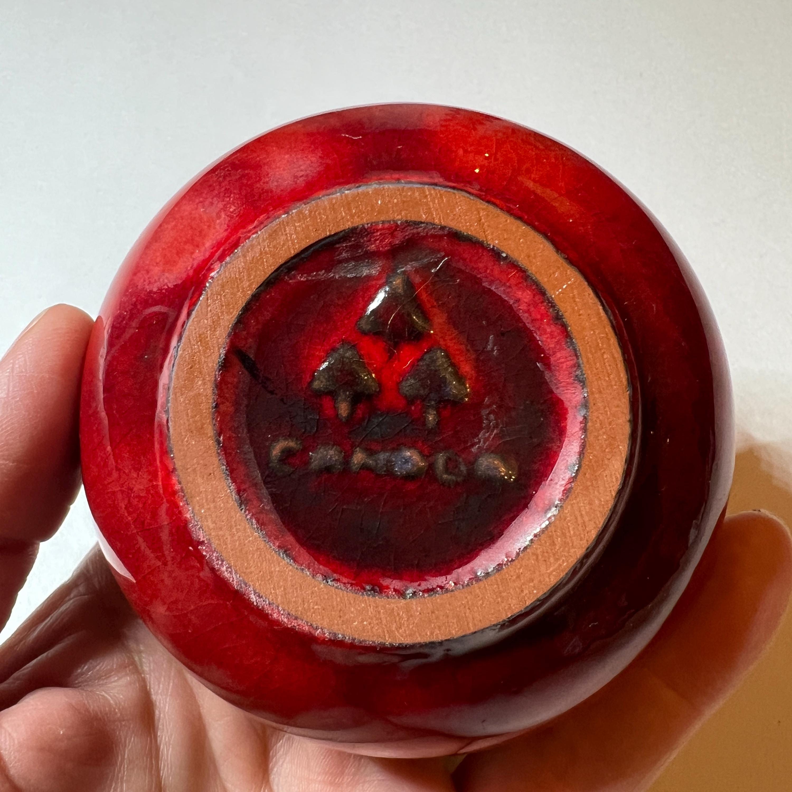 This gorgeous piece of pottery carries the 3 stylised trees and 'Canada' mark on the base. The Blue Mountain Pottery ceased production in the early 2000's and the exact age of this piece is not known. The pretty drip glazing reminds me of the markings on a red apple, it is so pretty.