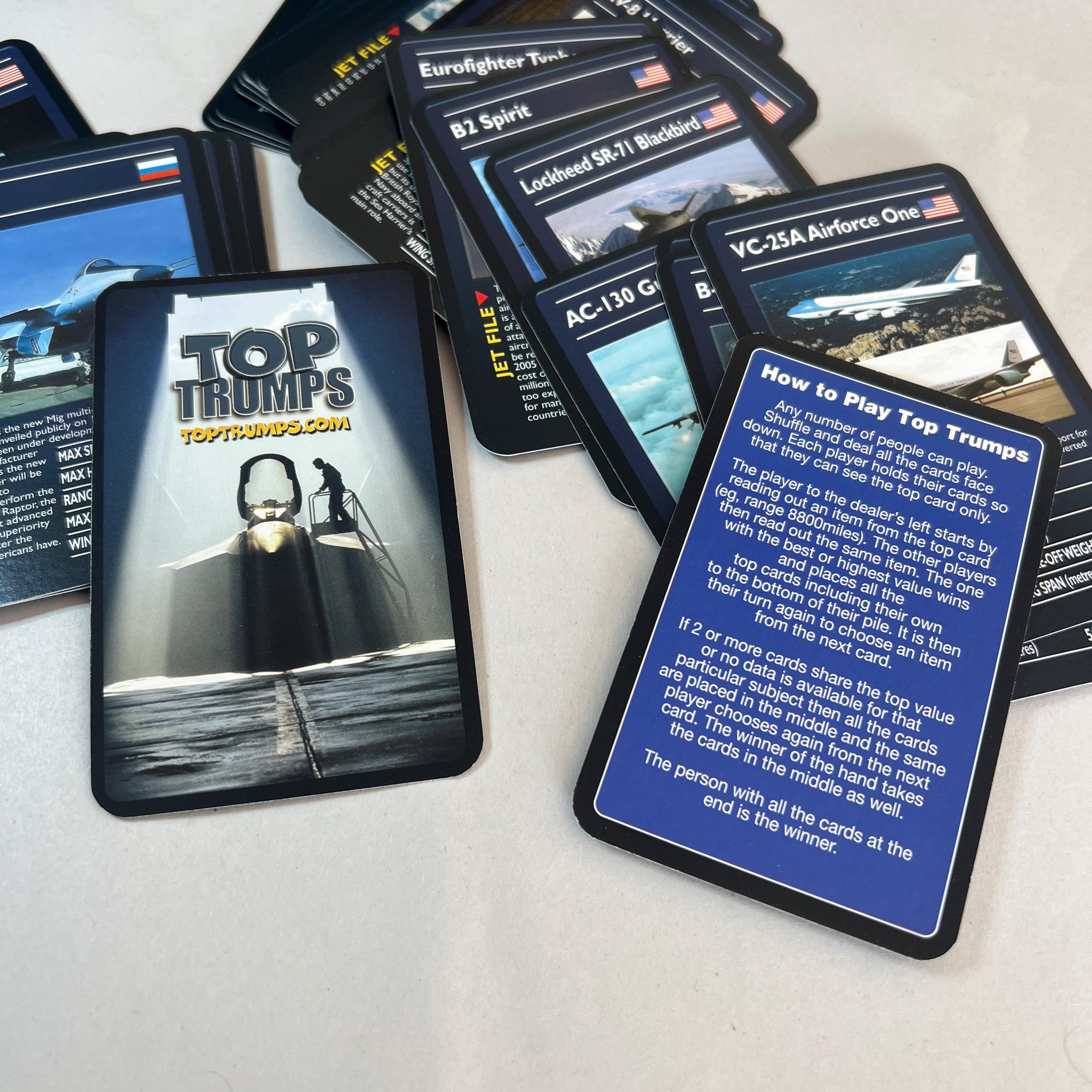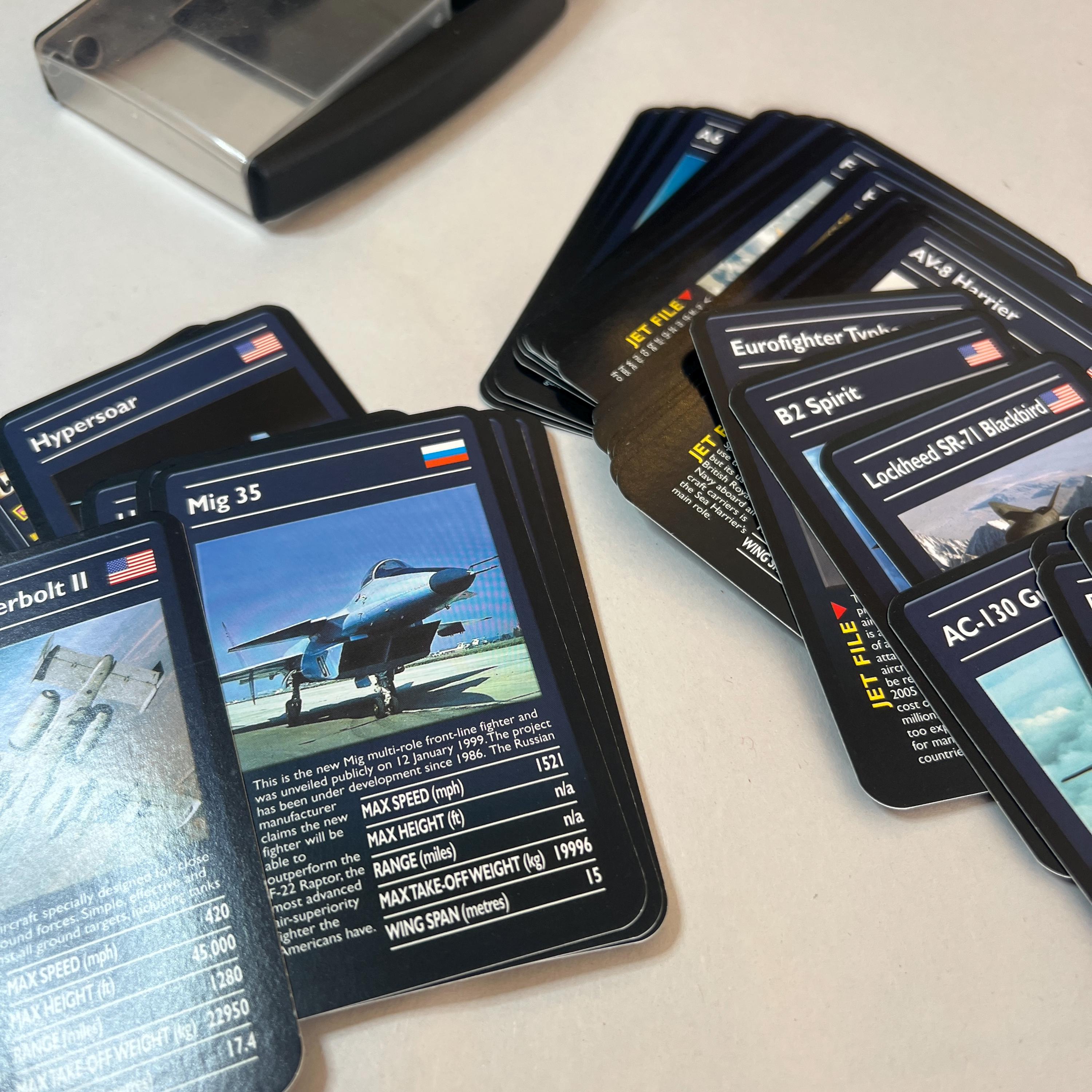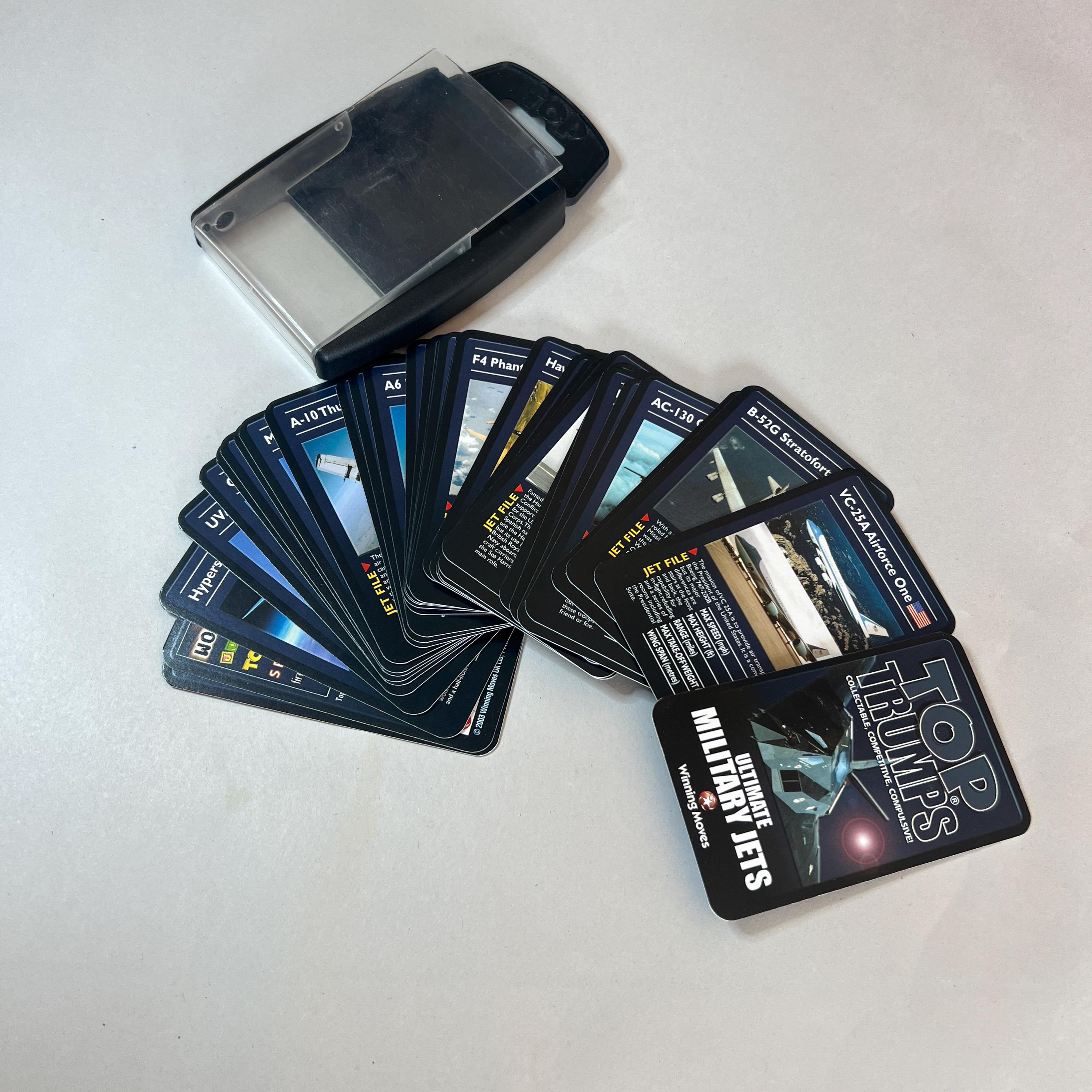 This listing is for the box of Ultimate military jets Top Trump cards only. All other items in the photographs are for display or size comparison purposes only and are not included.