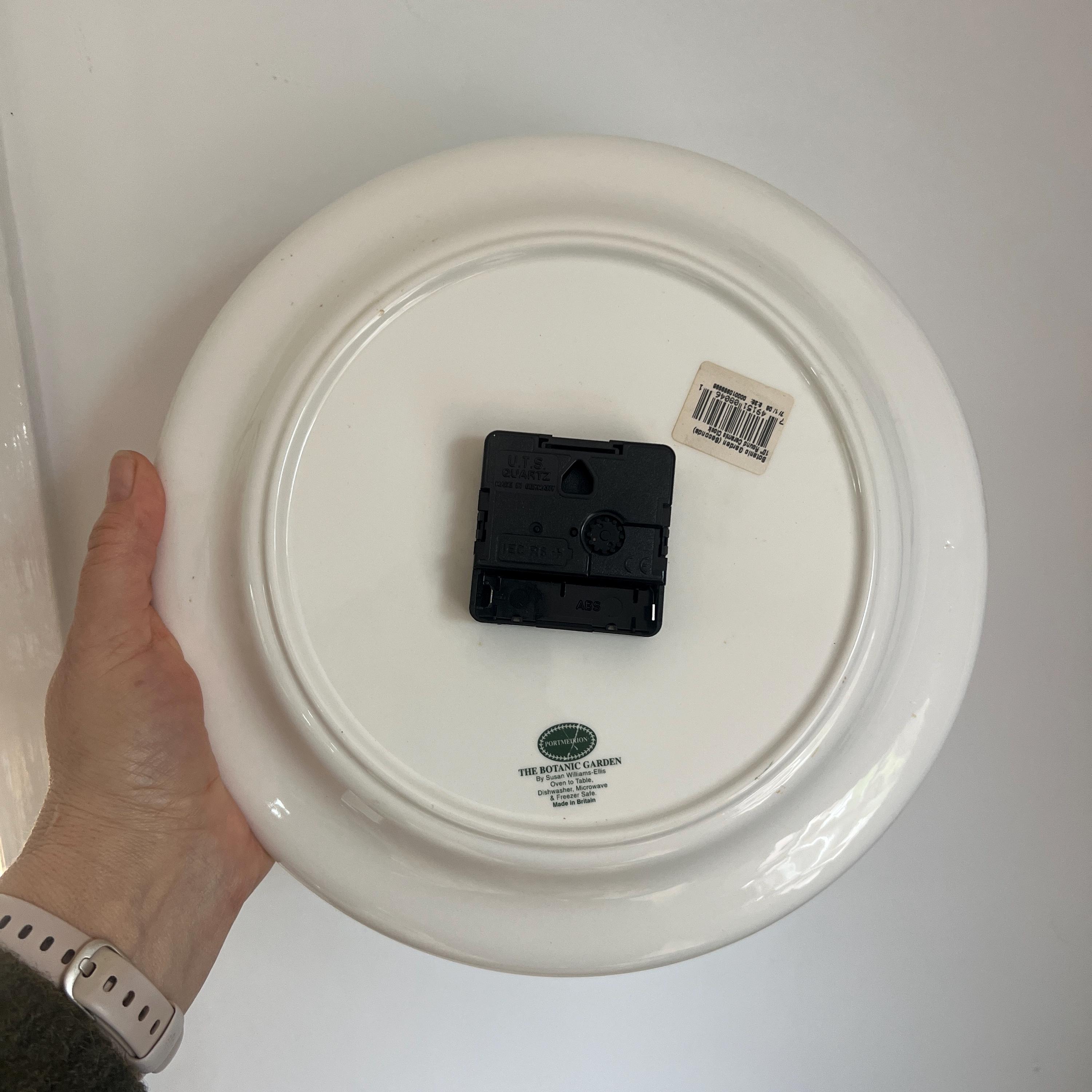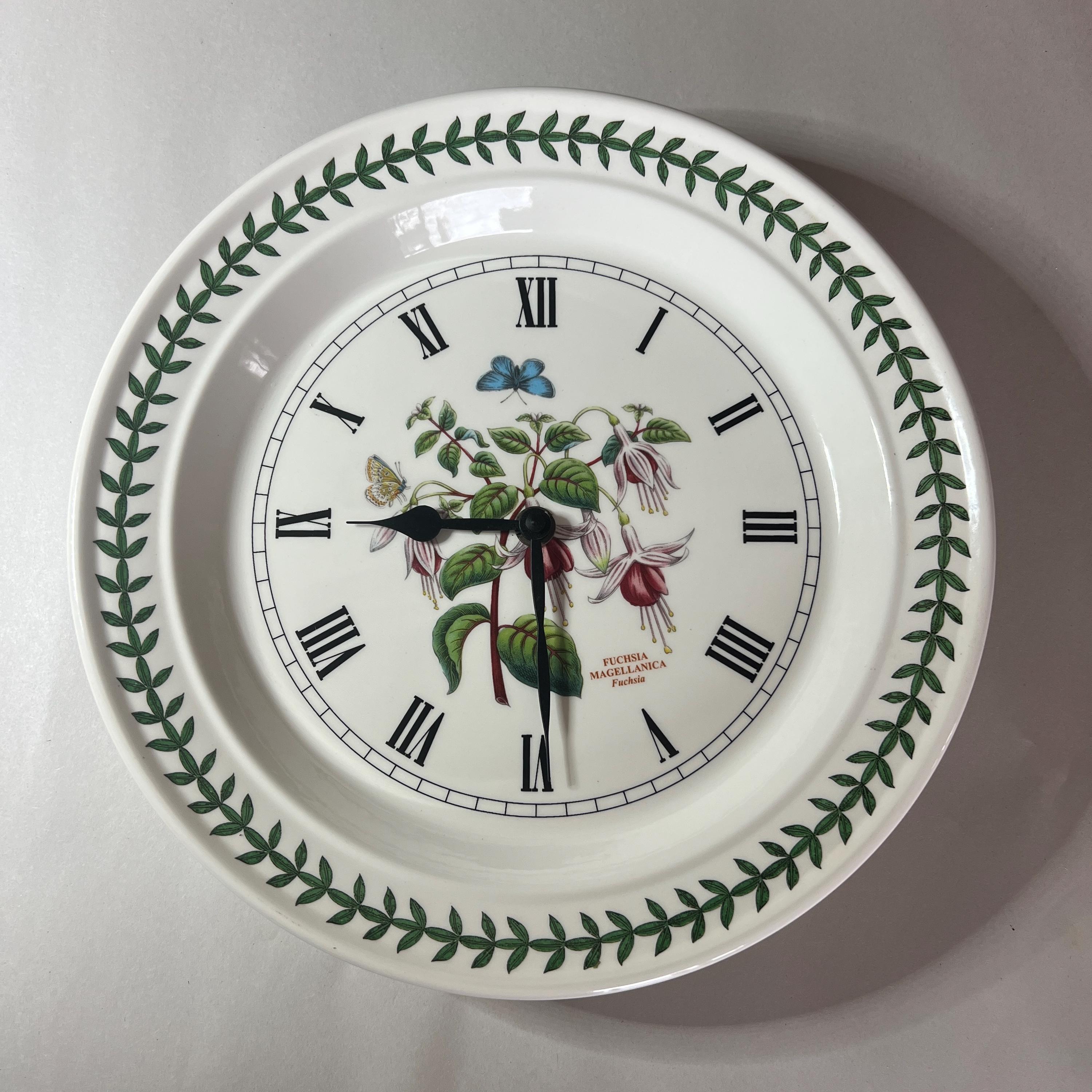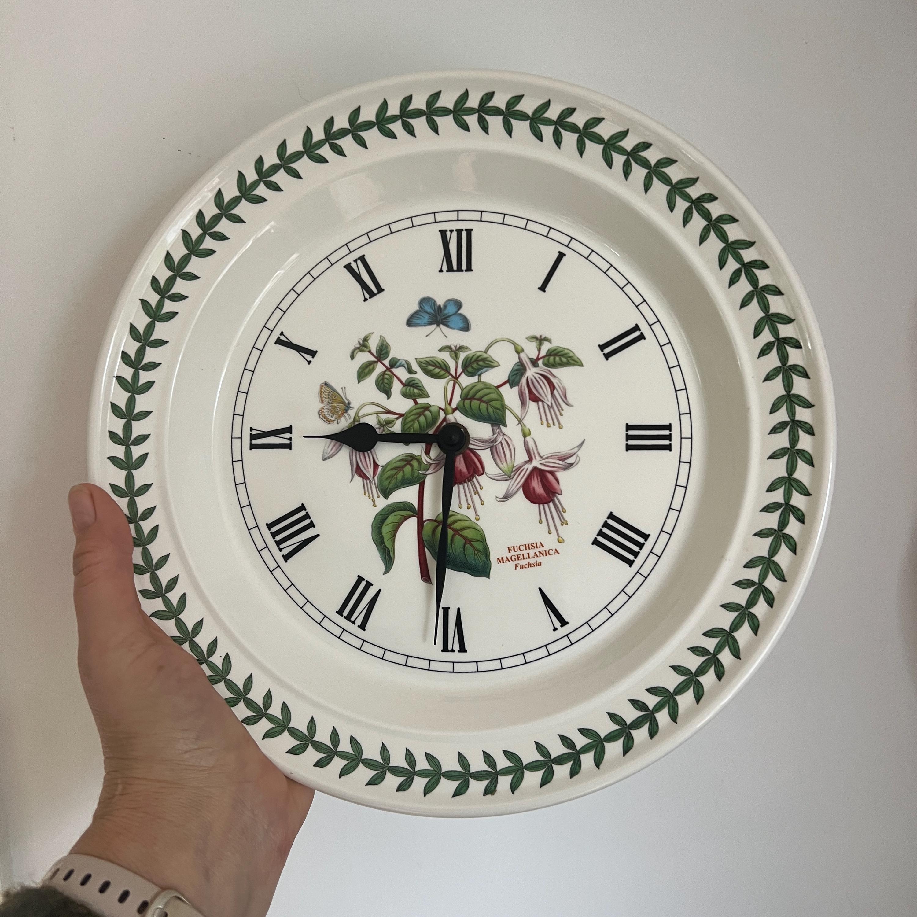 This listing is for the Portmeirion wall clock (with new battery) only. All other items in the photographs are for display or size comparison purposes only and are not included.