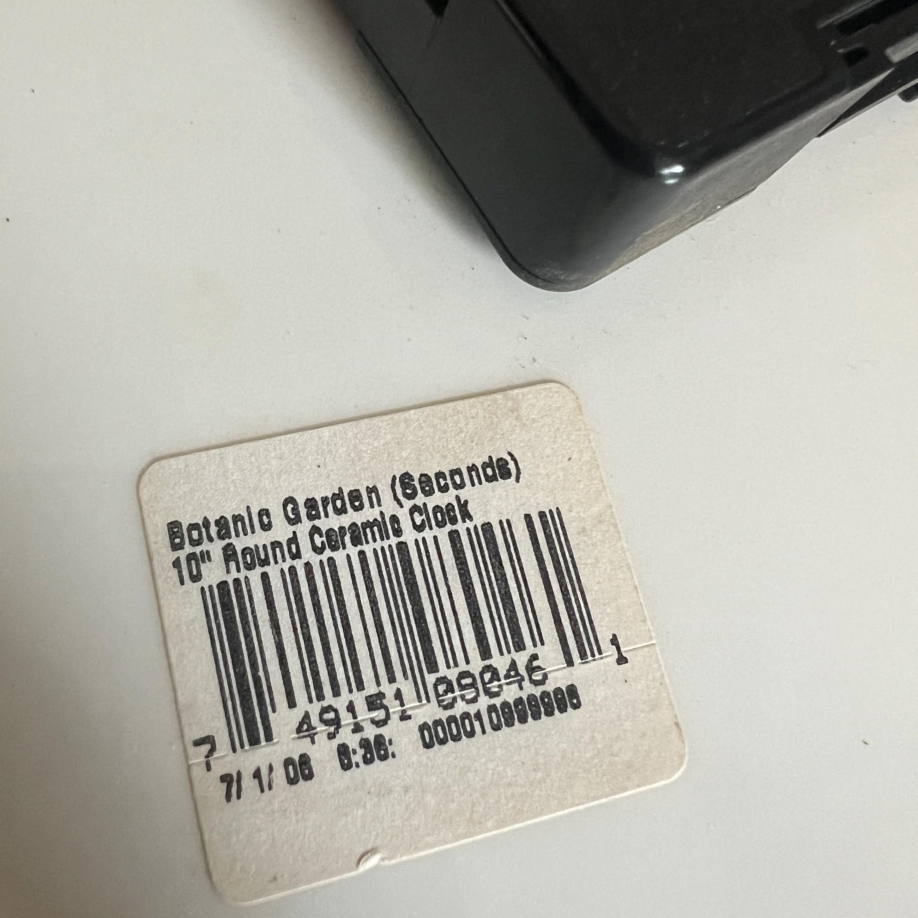 This lovely 27cm (10 inch) diameter Portmeirion Botanical Garden china wall clock is marked as a second on the back with a scratched cross through the back stamp. The only problem I can see is a couple of small glaze dimples between 11 and 12 on the face which are not easily noticed. Other wise it is in excellent condition and still has the label on the back.