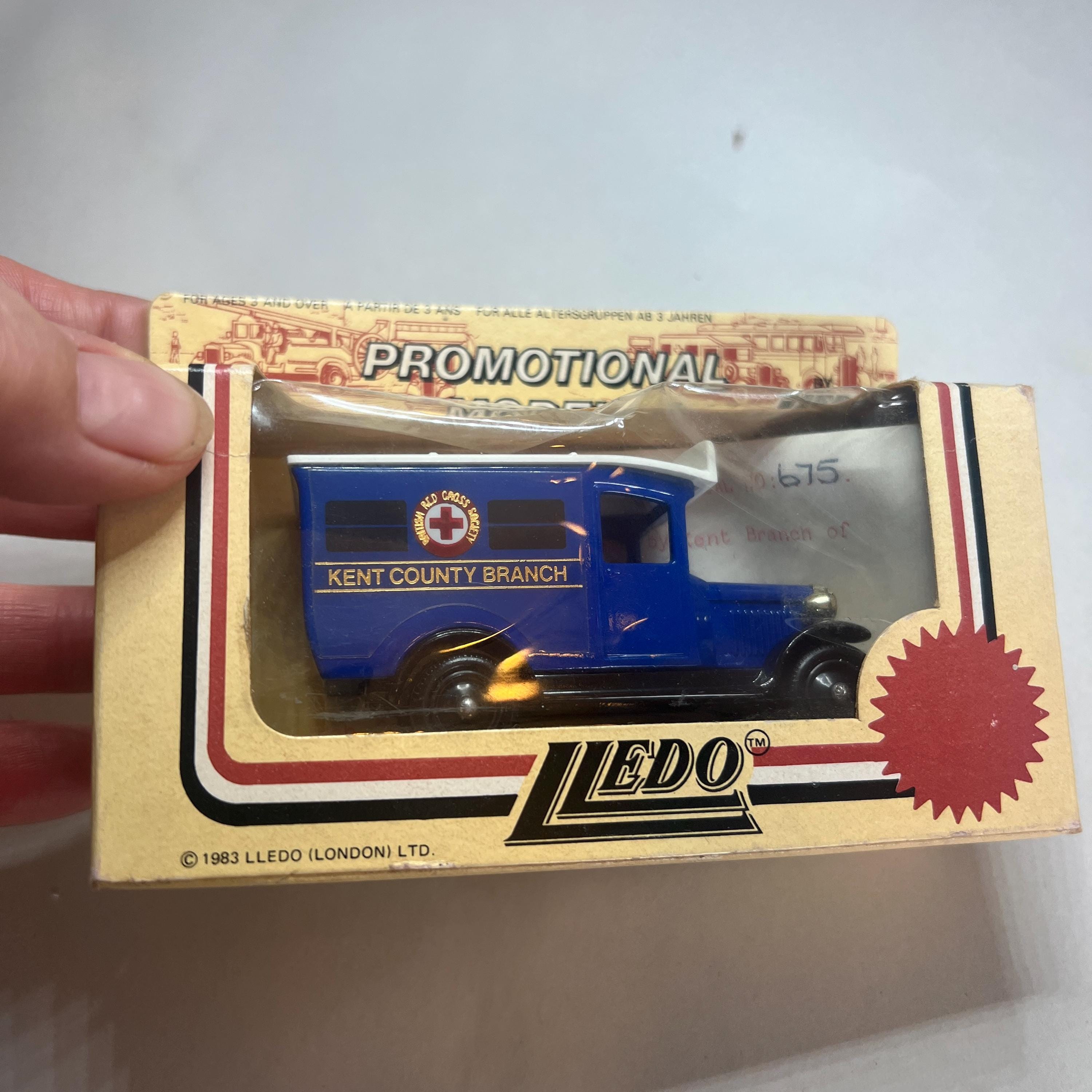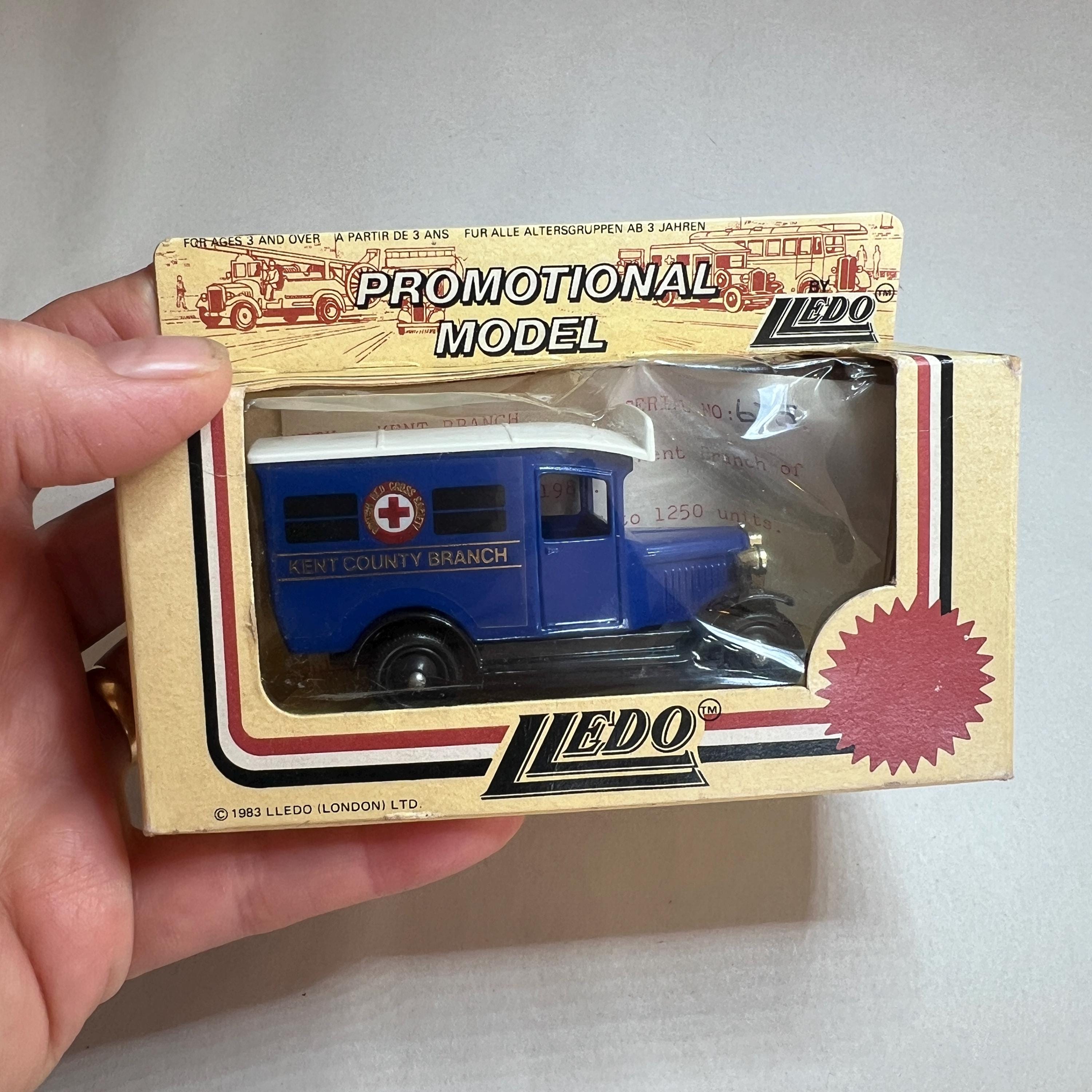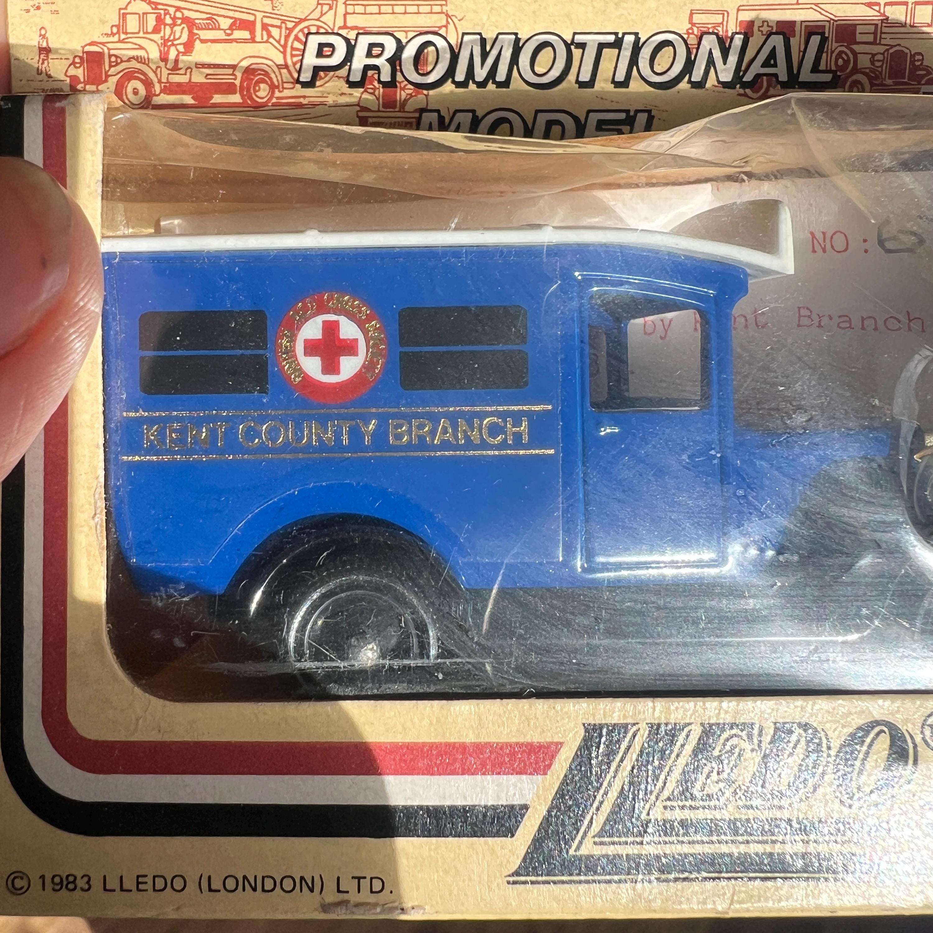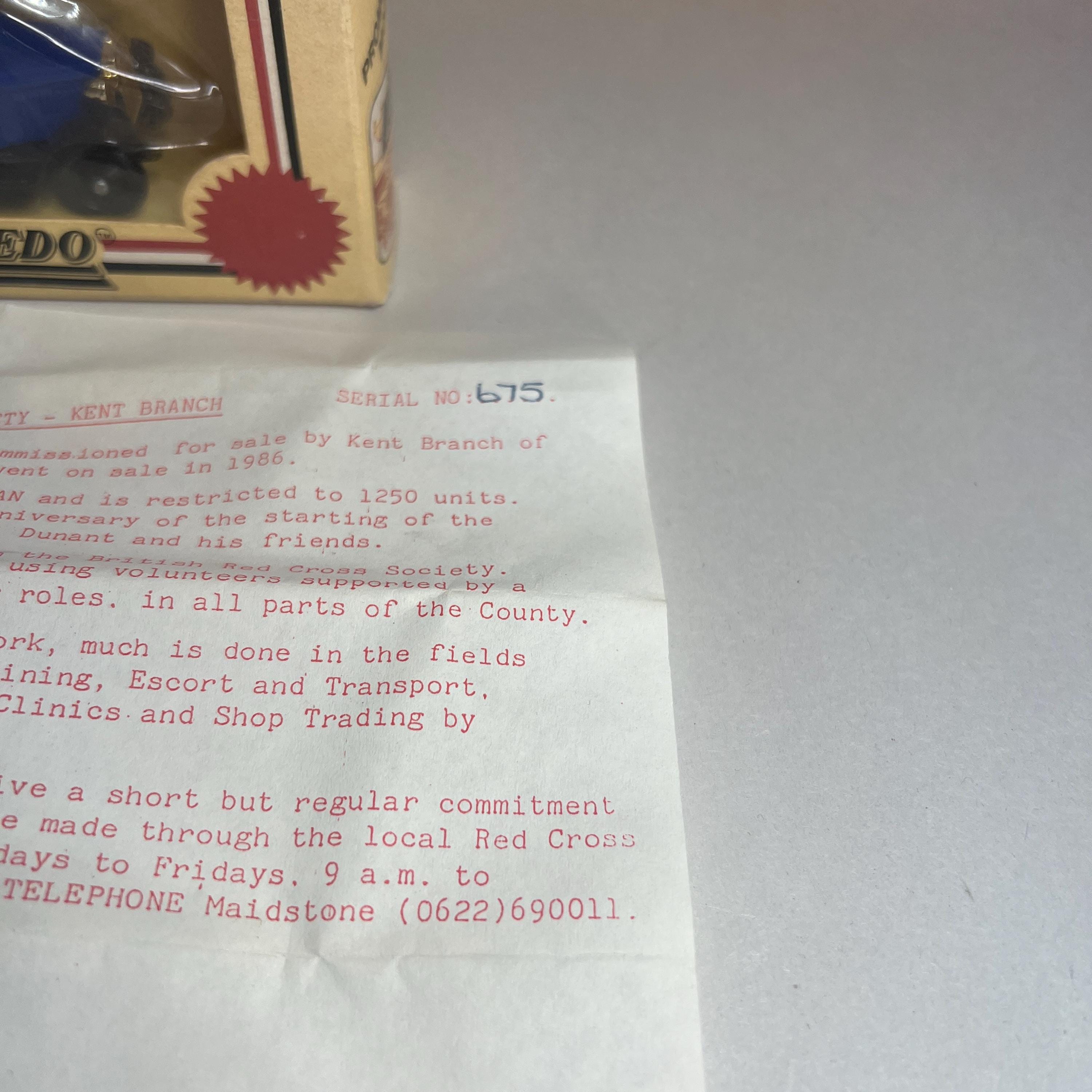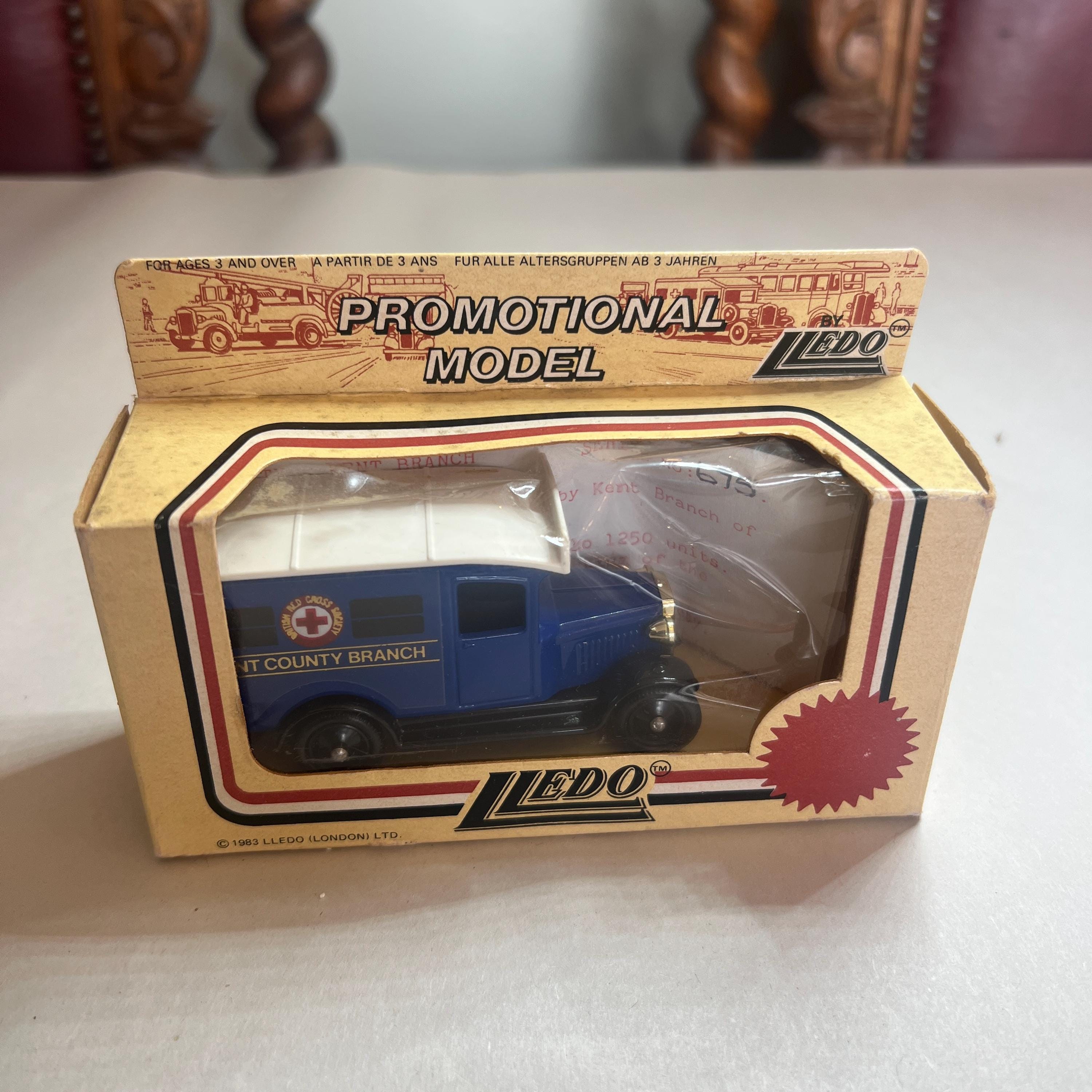 This item is a piece of history and would make a great gift for collectors. A lovely, vintage, boxed, certificated and hand numbered limited release die-cast promotional model of the Kent County Branch Red Cross van. The model is the Lledo LP21 Chevrolet van. This was part of a limited release of promotional models in 1988 to coincide with the Red Cross's 125th anniversary. Inside the box there is a folded leaflet/certificate explaining the significance of the model and highlighting the work of the organisation. This model is hand numbered 675 out of a release of 1200. The certificate/leaflet is contained within the box behind the model.