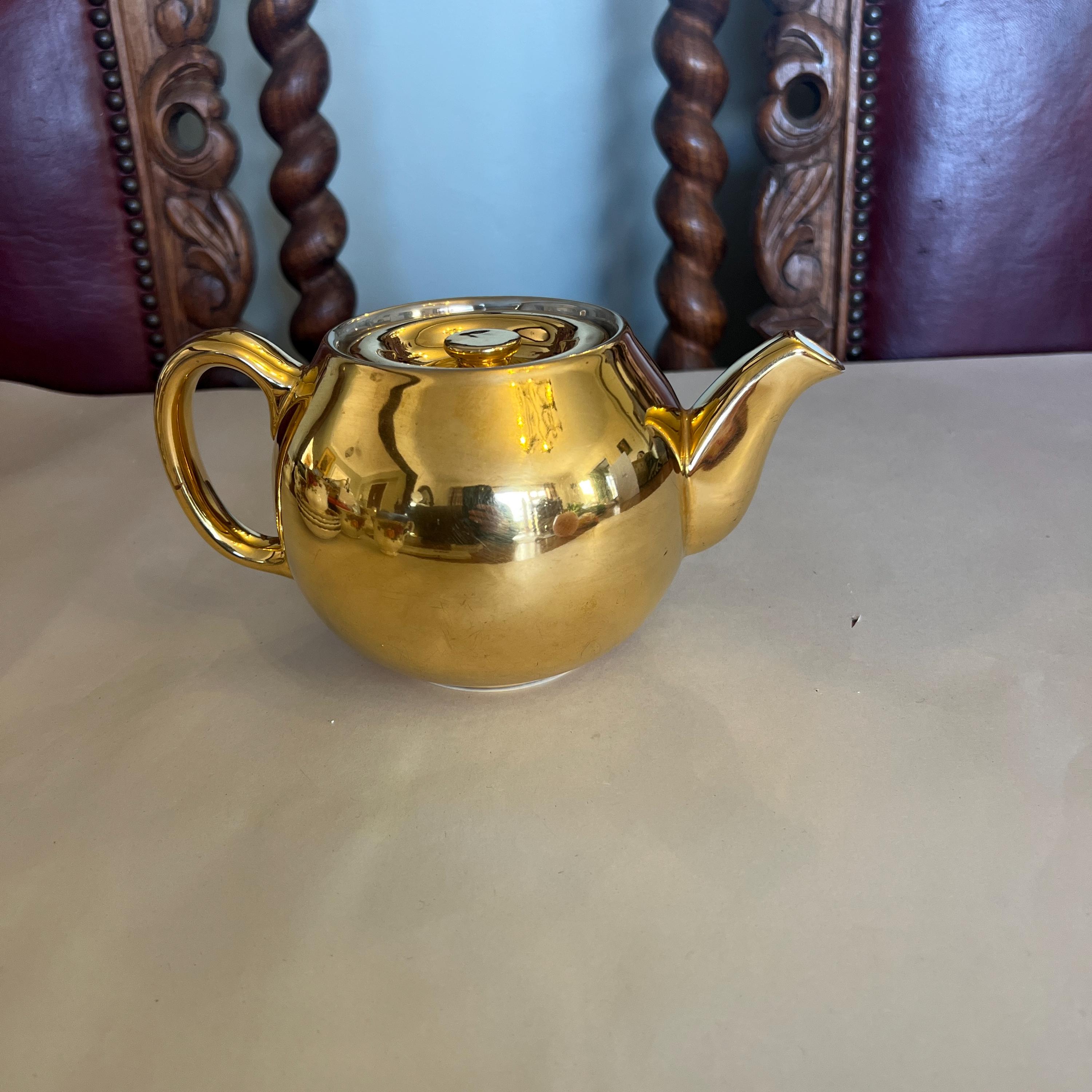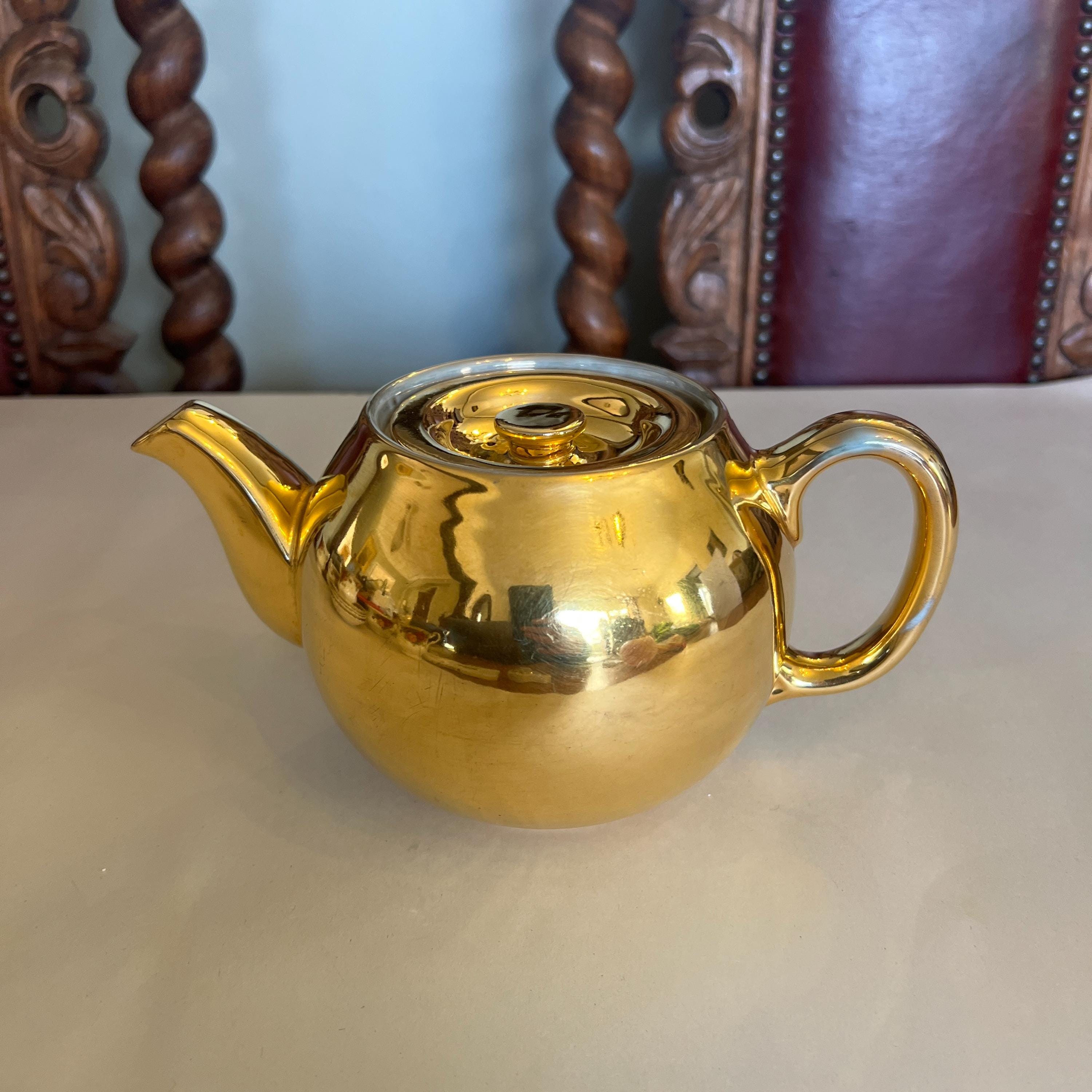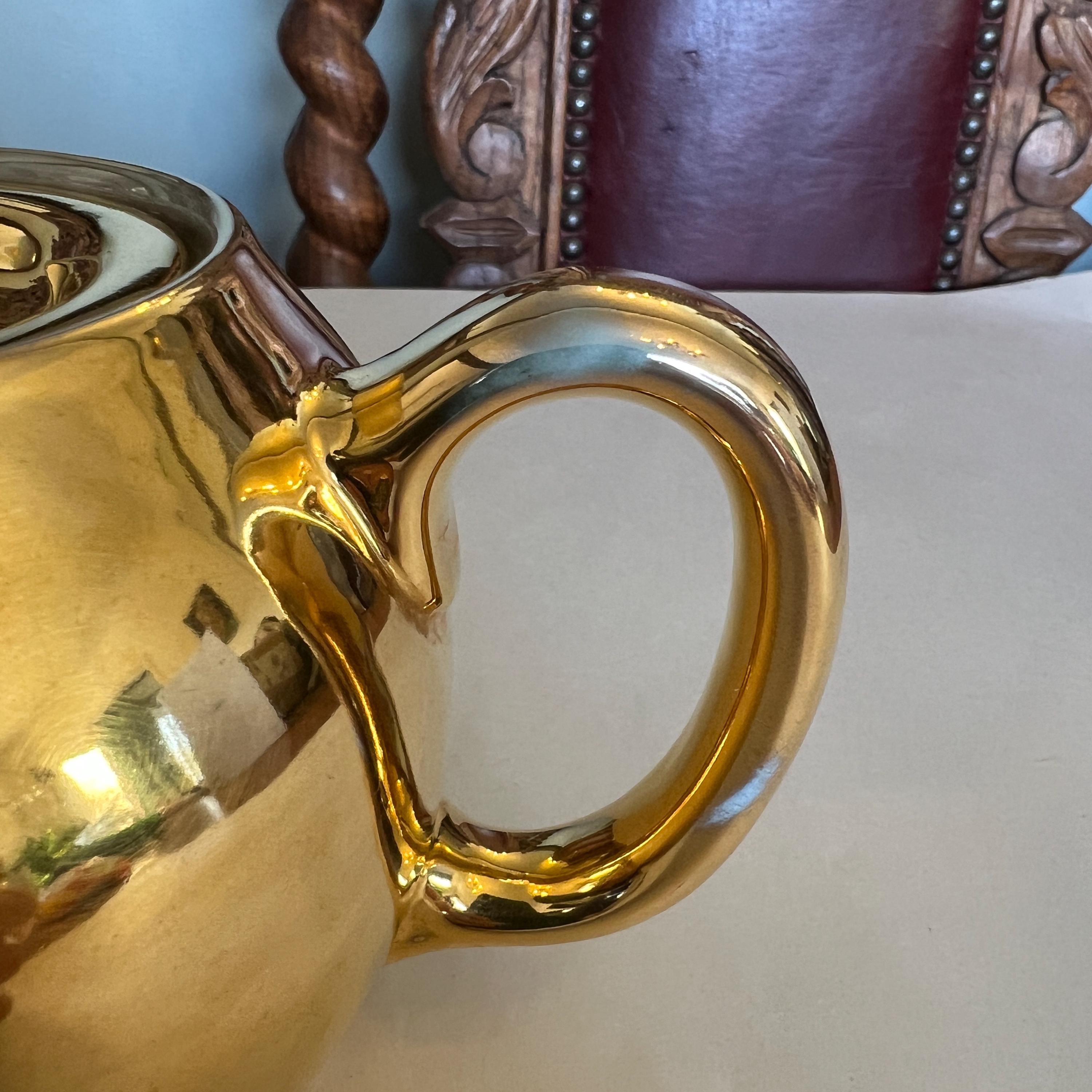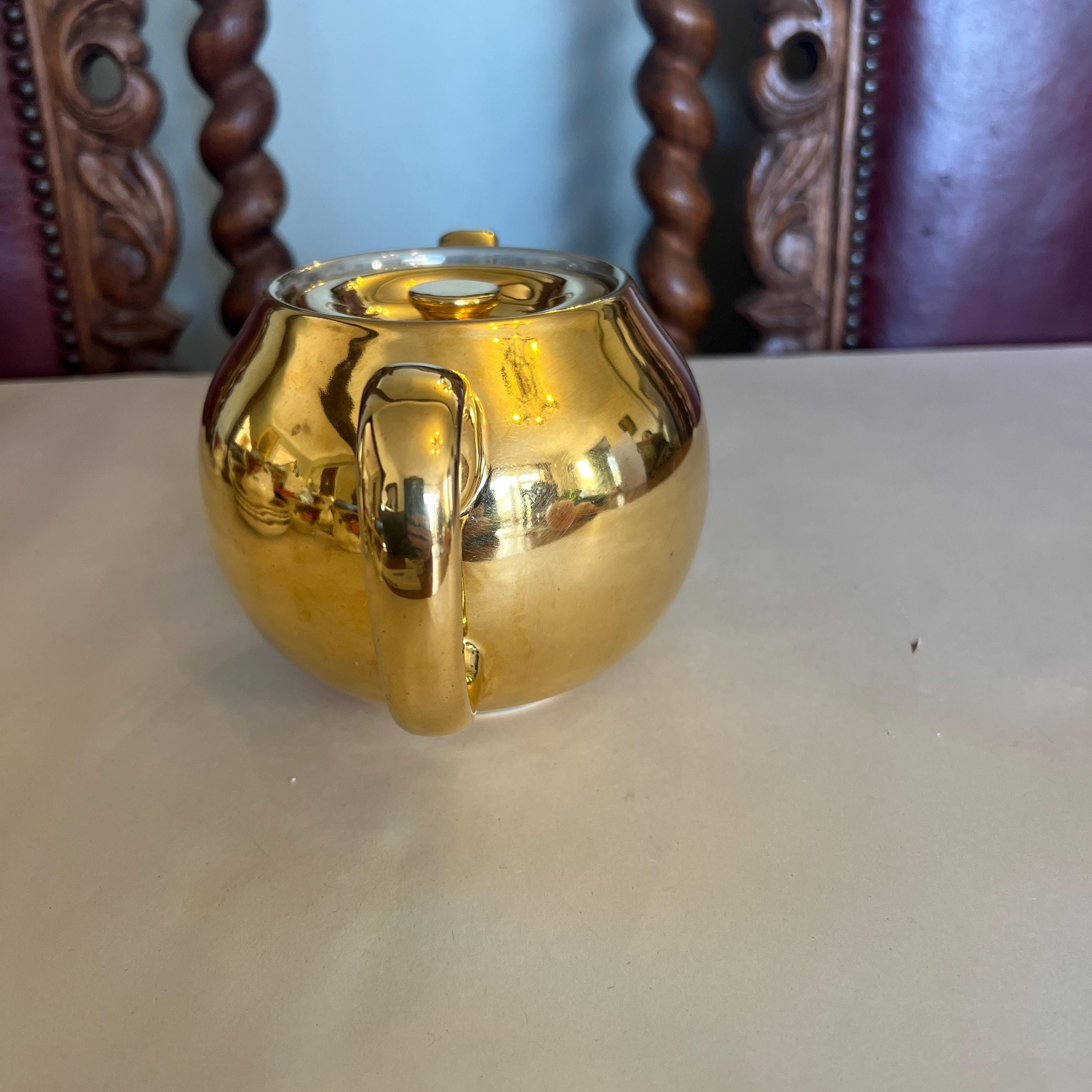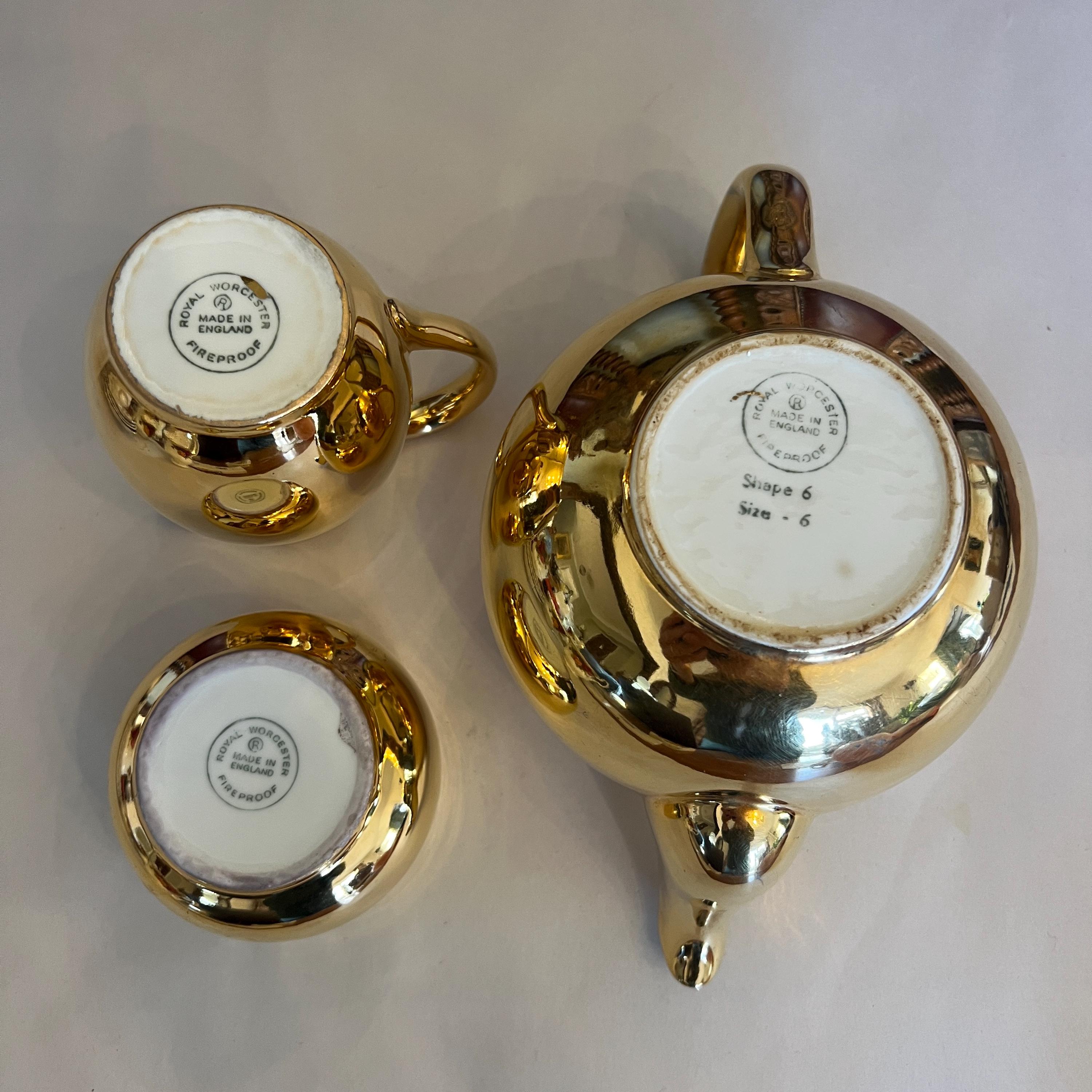 A vintage, used, Royal Worcester English gold lustre teapot, milk jug and sugar bowl set in excellent used condition, no damage but with a minor amount of wear on the gold.